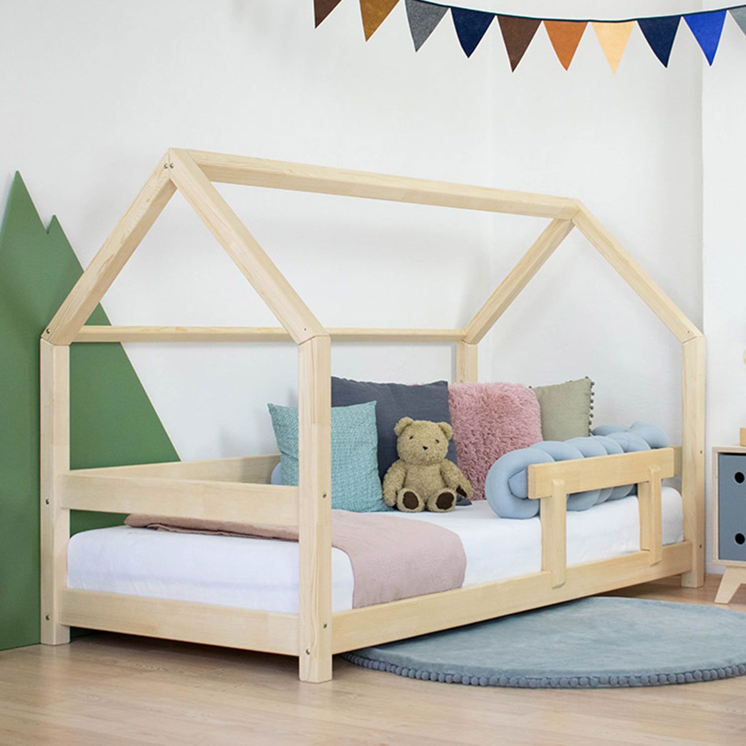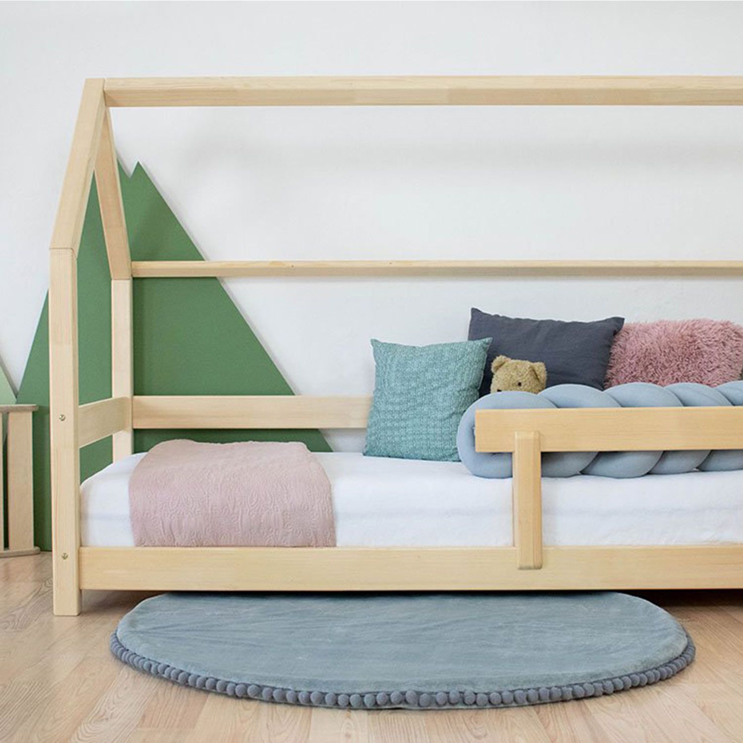 Ce lit Montessori “TERY” permet à votre enfant de gagner en autonomie en toute sécurité ! Fabriqué à la main en Europe, ce lit est à 6 cm de hauteur du sol pour que votre enfant puisse aller et venir dans son lit facilement et permettre à l'air de circuler. Le sommier du lit vous est offert avec la structure du lit. Le lit a une capacité de charge de 150 kg, idéal pour pouvoir lire l'histoire du soir sous le toit du tipi. Existe en 12 coloris (blanc, verni, beige, gris clair, gris foncé, vert sauge, rose pastel, rouge brique, bleu marine, vert pétrole, bleu clair, non verni) et en 10 dimensions pour s'adapter à l'âge de votre enfant (70x160 cm, 80x160 cm, 80x180 cm, 90x160 cm, 90x180 cm, 90x190 cm, 90x200 cm, 120x180 cm, 120x190 cm, 120x200 cm, 140x200 cm). Couleurs 100% naturelles, anti-allergiques . Un matelas entre 15 et 18 cm d'épaisseur (120 x 180 cm) est recommandé. Le matelas n'est pas fourni. Benlemi est une entreprise familiale spécialisée dans le mobilier en bois et notamment l'équipement des chambres d'enfant. Cette entreprise européenne dessine et fabrique dans sa propre usine de fabrication les produits proposés. Le design des lits et accessoires est pensé dans une philosophie Montessori. Le vernissage est fait à la main avec des peintures 100% naturelles et anti-allergiques. Le bois utilisé est tracé et rigoureusement sélectionné et la chaîne de fabrication est labellisée PEFC. Produit à monter soi-même. Un manuel de montage est disponible. Garanti 5 ans. Dimensions totales du lit : 160 x 149 x 209 cm (hauteur x largeur x longueur). Des délais de fabrication et de livraison peuvent intervenir.