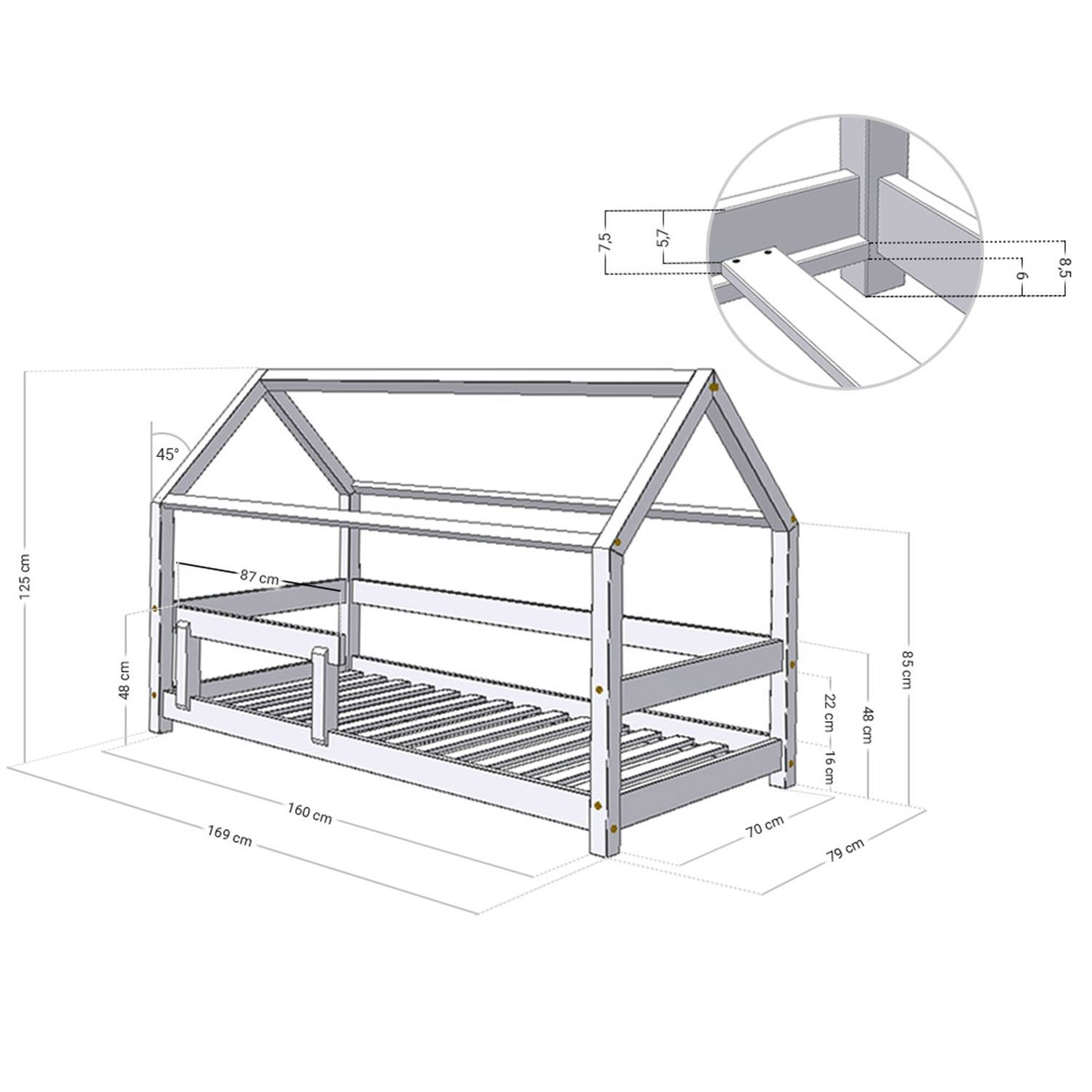 Libellé Lit cabane enfant TERY 70 x 160 gris clair