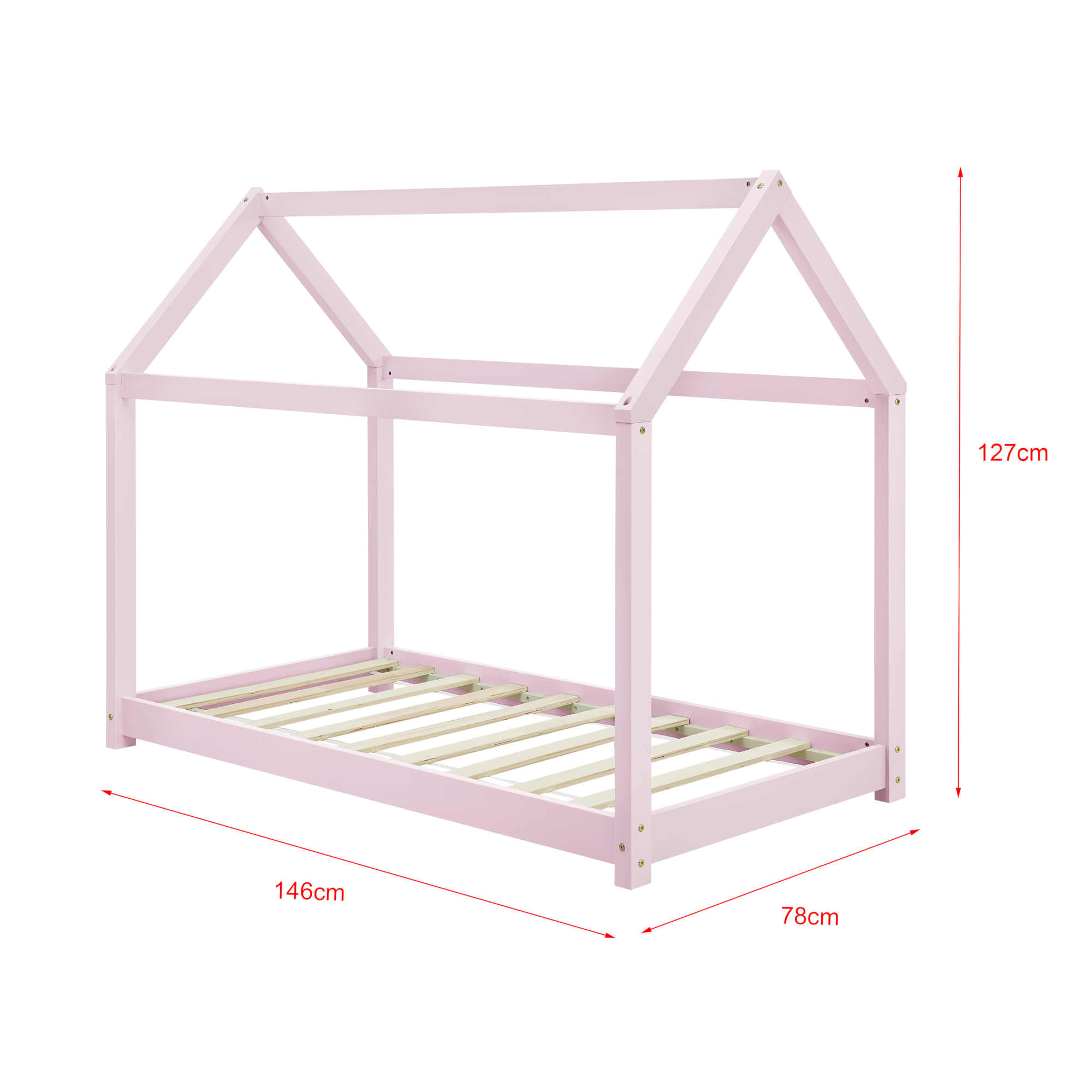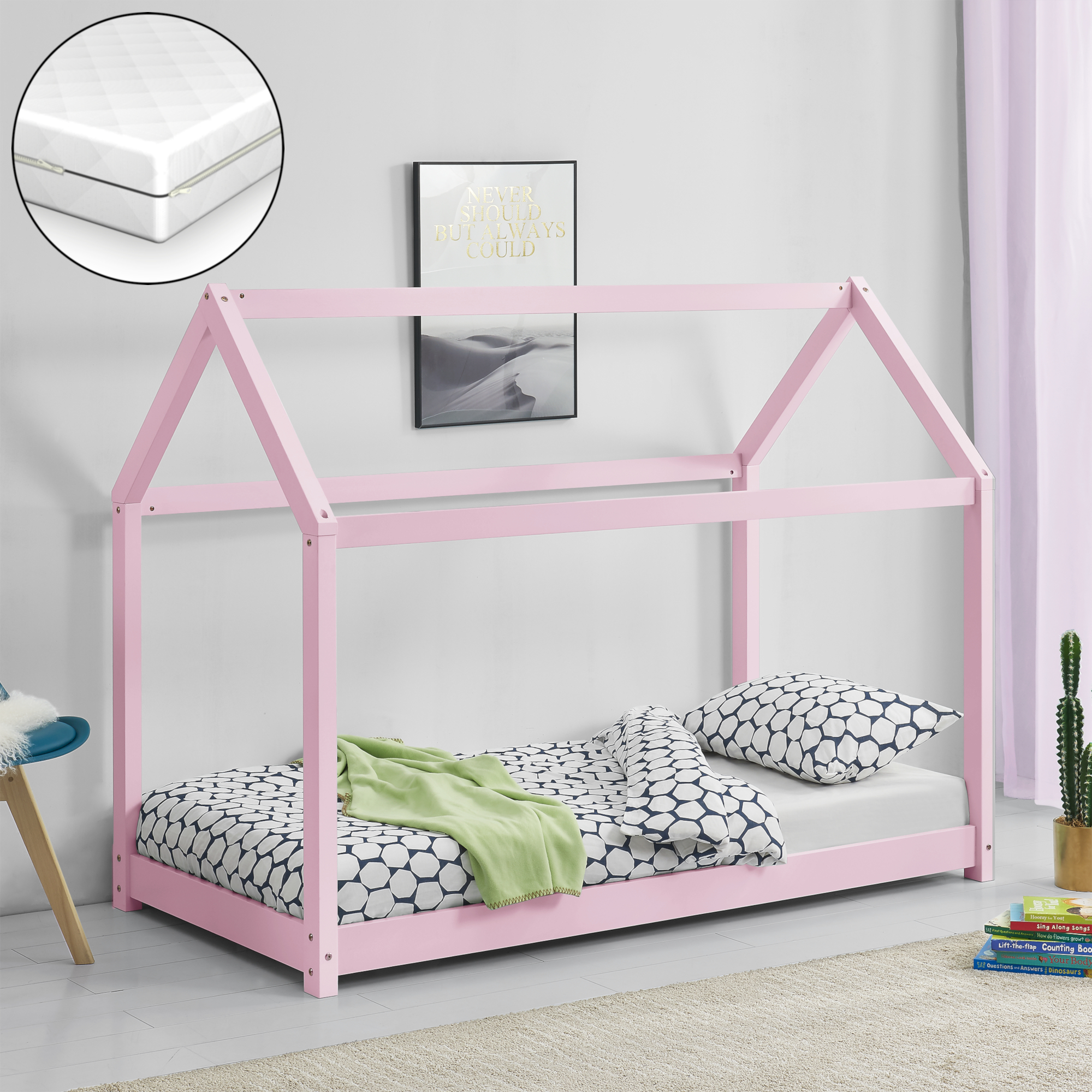 Lit Cabane Forme Maison Netstal avec Matelas Orthopédique 140 x 70 cm Rose [en.casa]