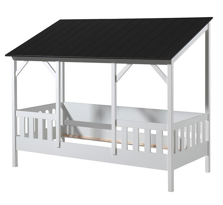 | Libellé | Lit cabane gigogne 90x200 pin massif blanc toit noir Henri |