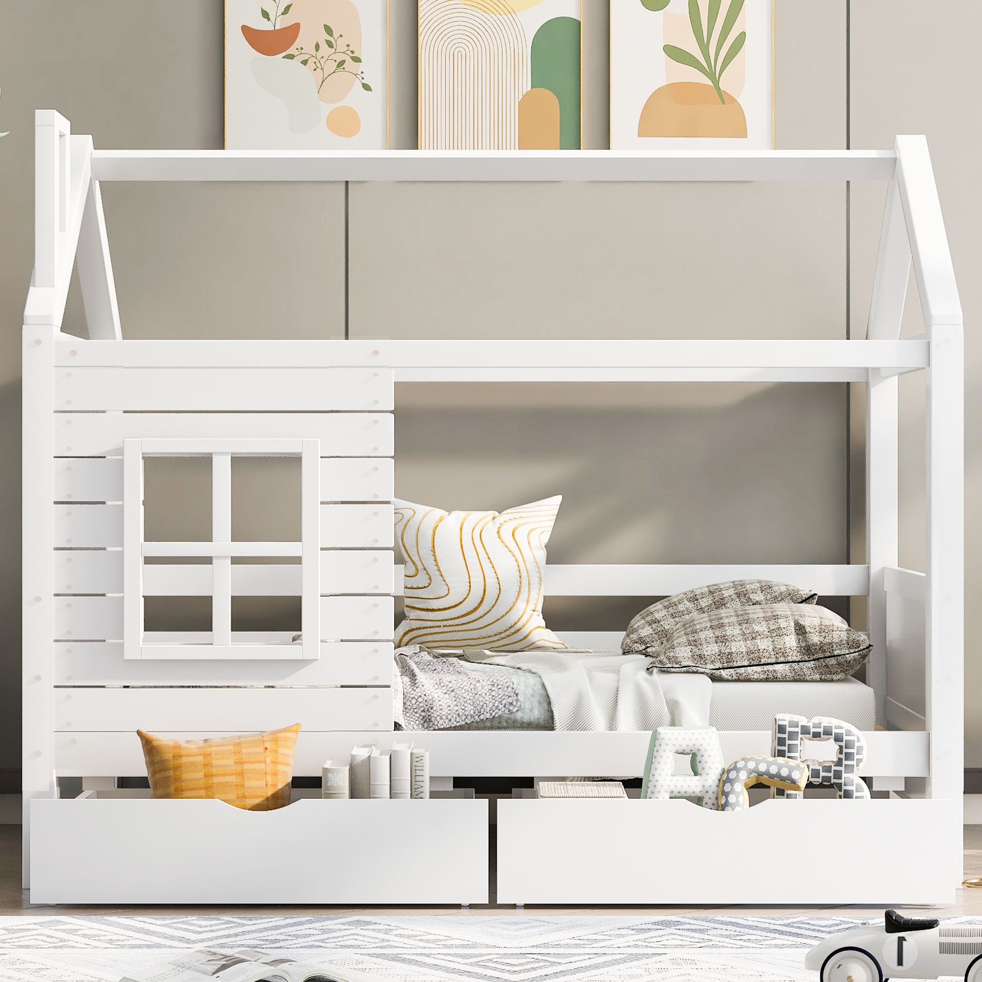 Lit cabane, lit adolescent 90 x 200 cm avec protection antichute, lit enfant polyvalent, blanc