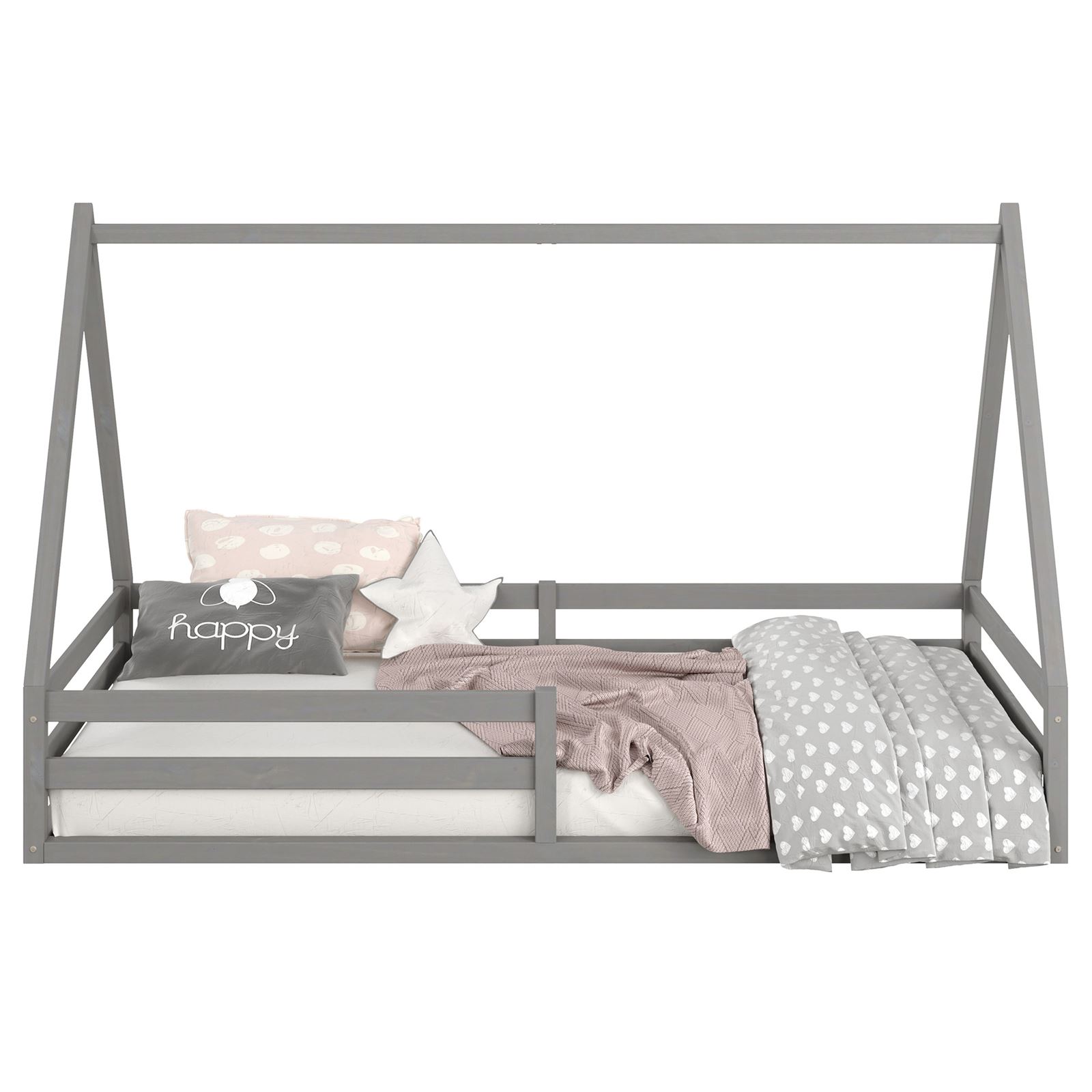 Lit cabane SILA 90x190 cm, lit simple enfant 1 place type Montessori, en pin massif gris