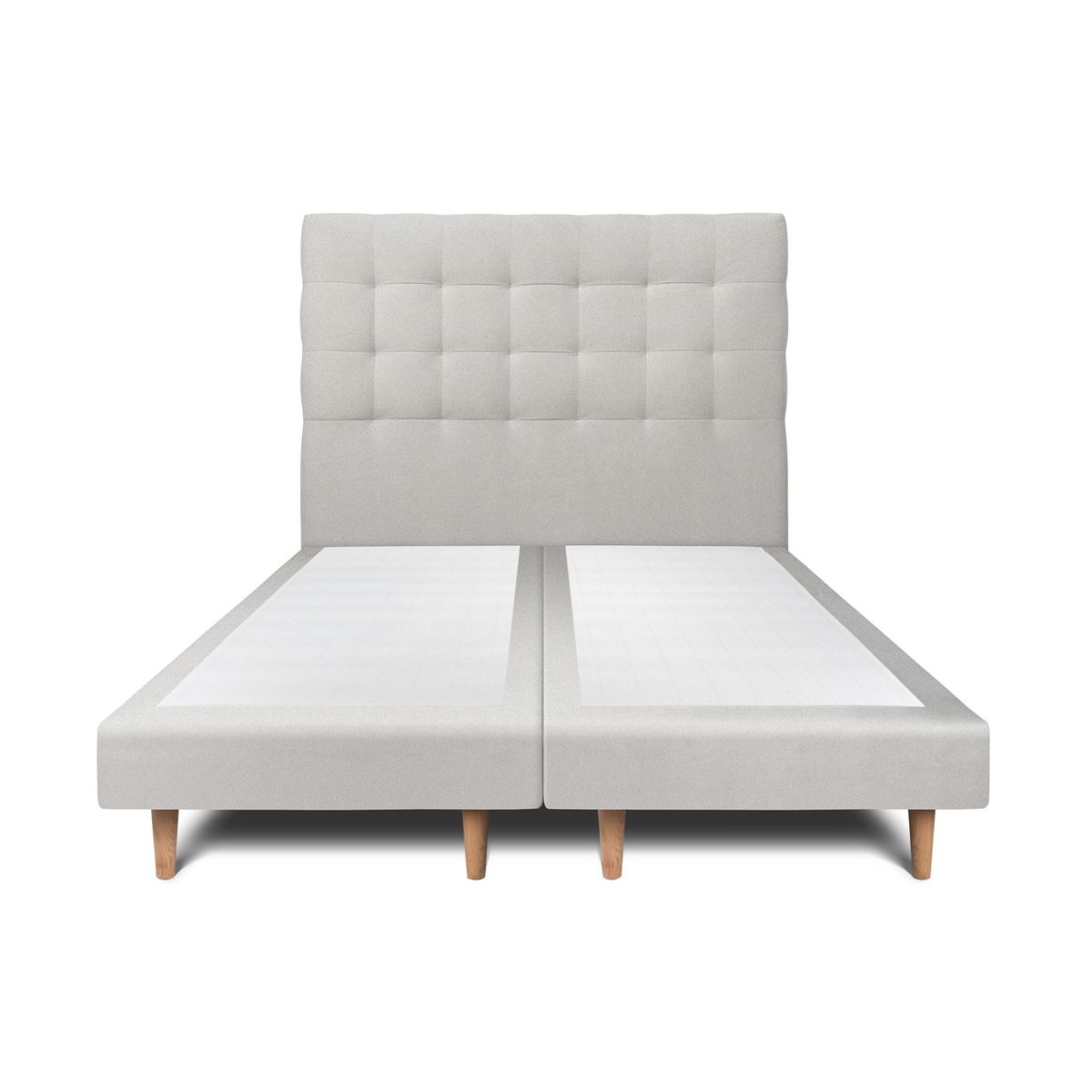 | Libellé | Lit cm avec tête de lit capitonnée velours et double sommier tapissier gris clair Hauteur totale : 29cm |