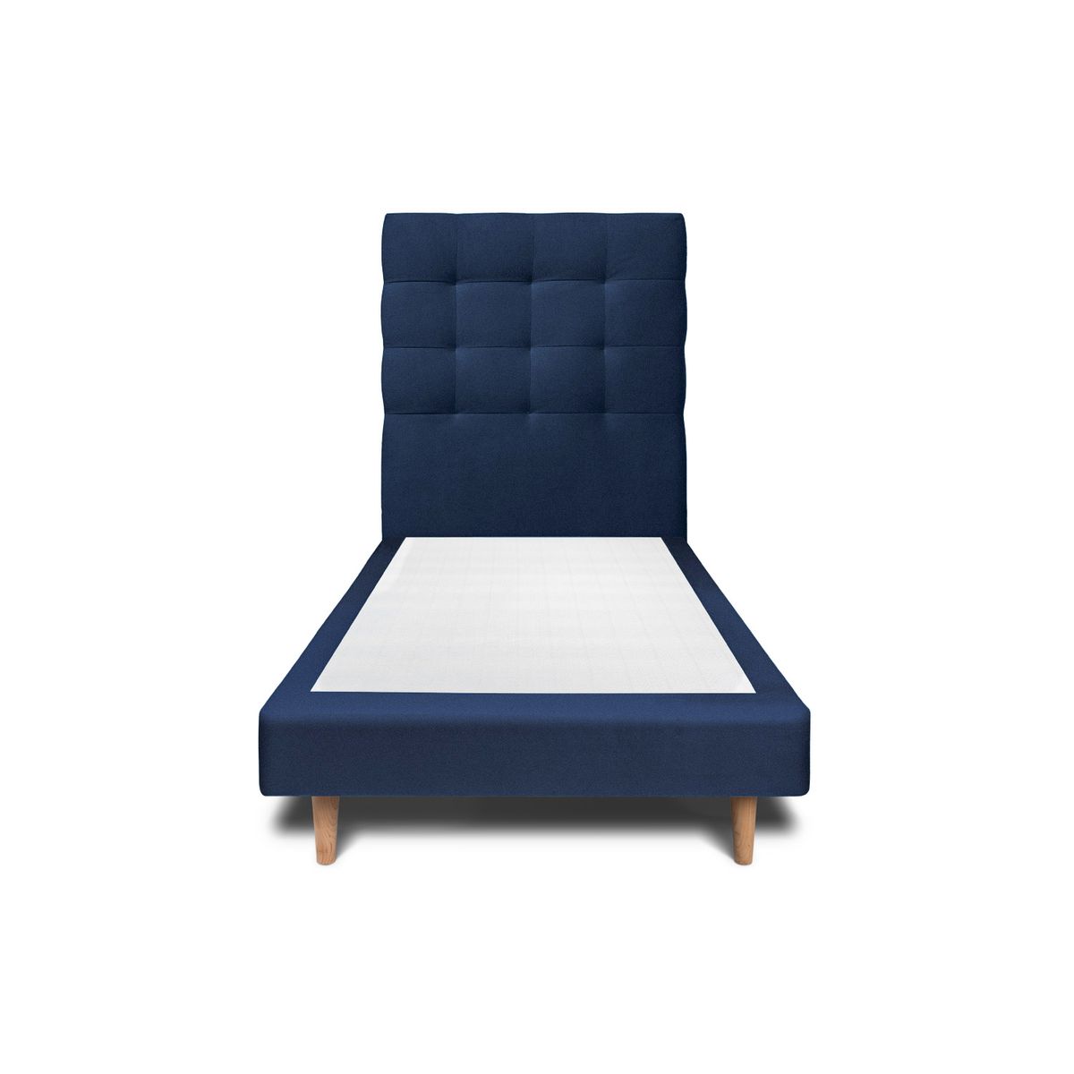 Lit cm avec tête de lit capitonnée velours et sommier tapissier Bleu - Hauteur totale : 29cm