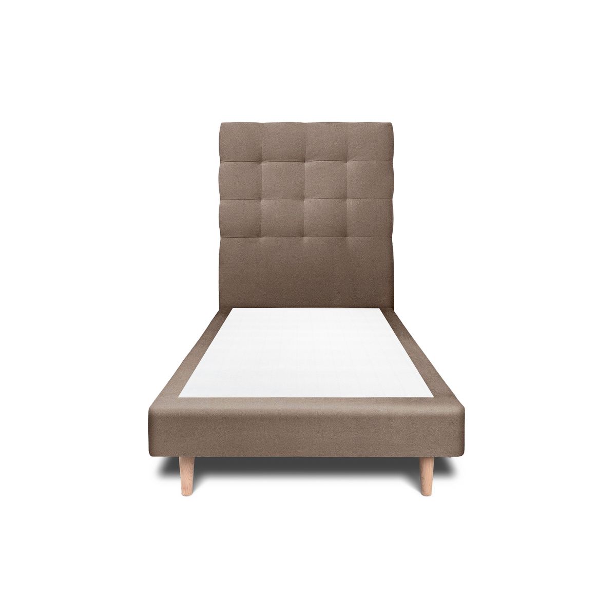Lit cm avec tête de lit capitonnée velours et sommier tapissier taupe - Hauteur totale : 29cm