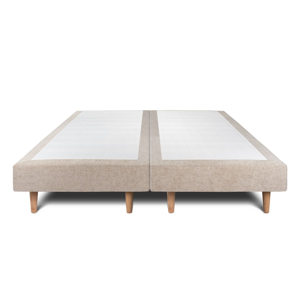 Lit cm avec tête de lit tapissier tissu et double sommier tapissier beige brun - Hauteur totale : 29cm