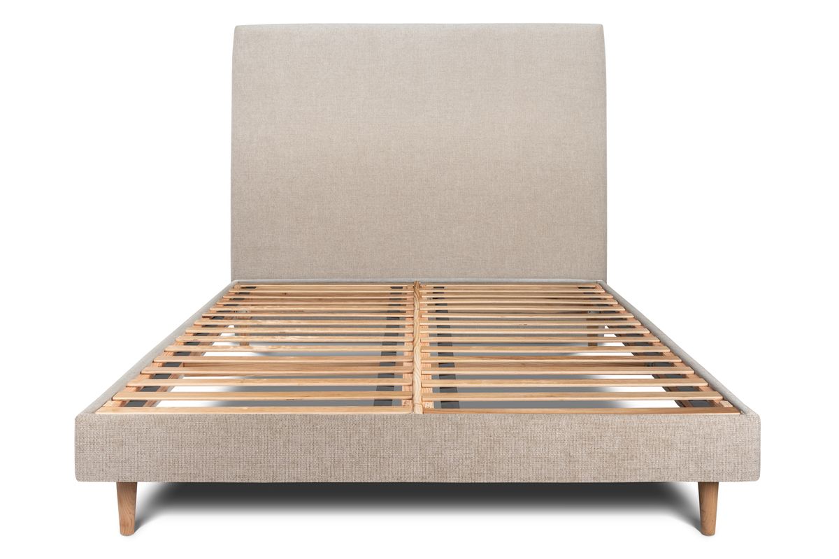 Lit cm avec tête de lit tapissier tissu et sommier kit beige brun - Hauteur totale : 29cm