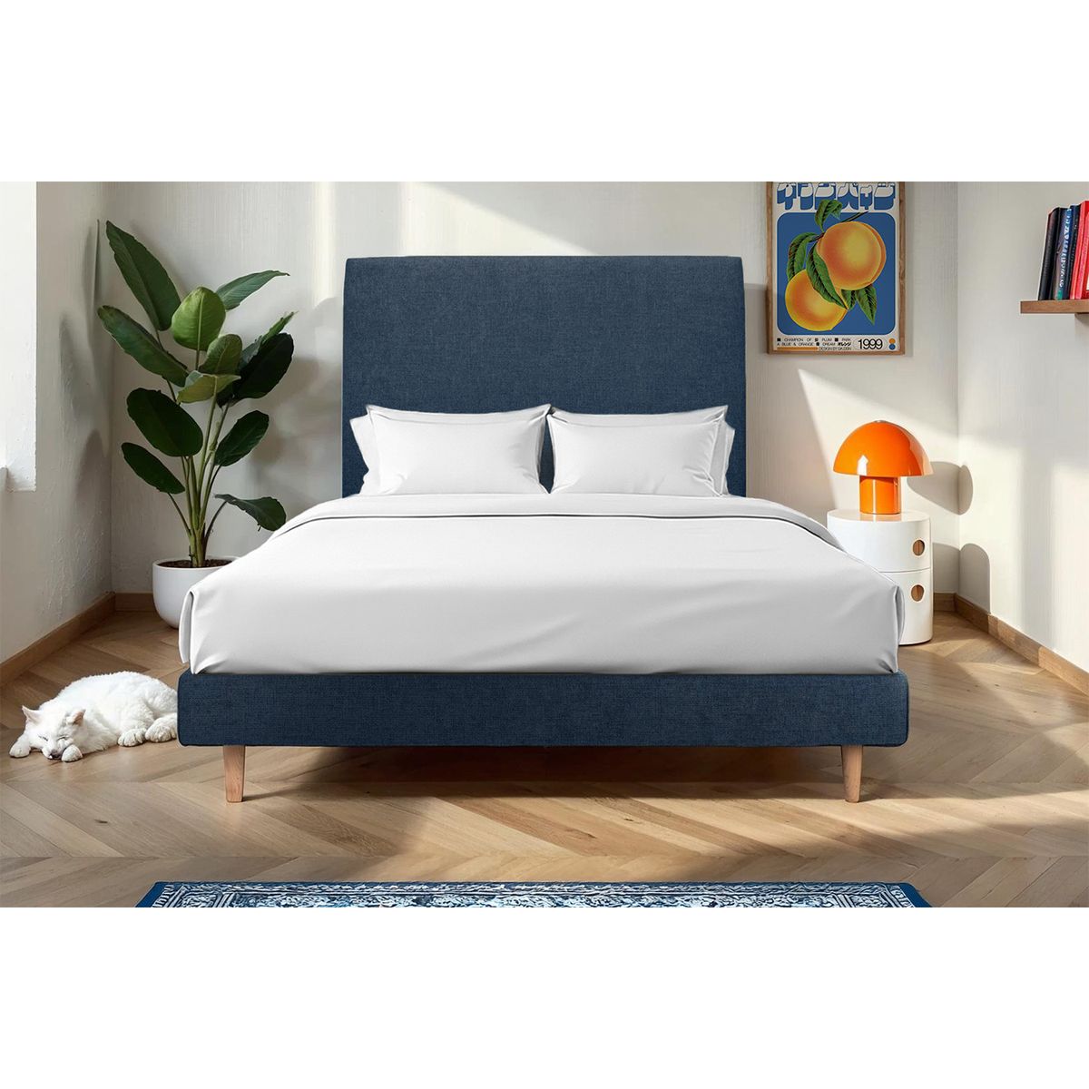 Lit cm avec tête de lit tapissier tissu et sommier kit Bleu - Hauteur totale : 29cm