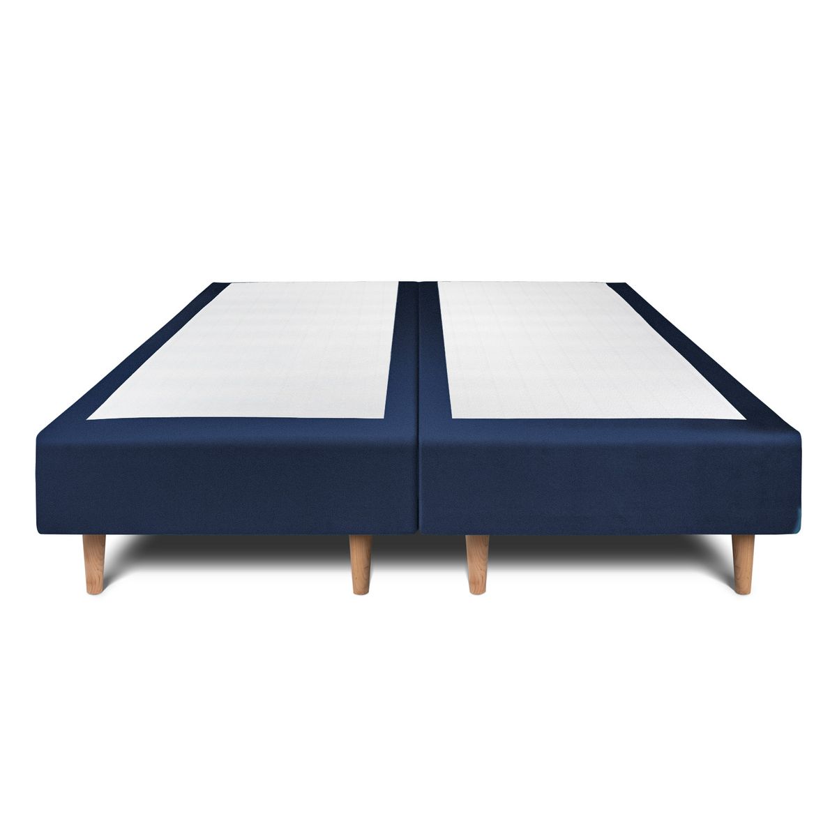 Lit cm avec tête de lit tapissier velours et double sommier tapissier bleu - Hauteur totale : 35cm