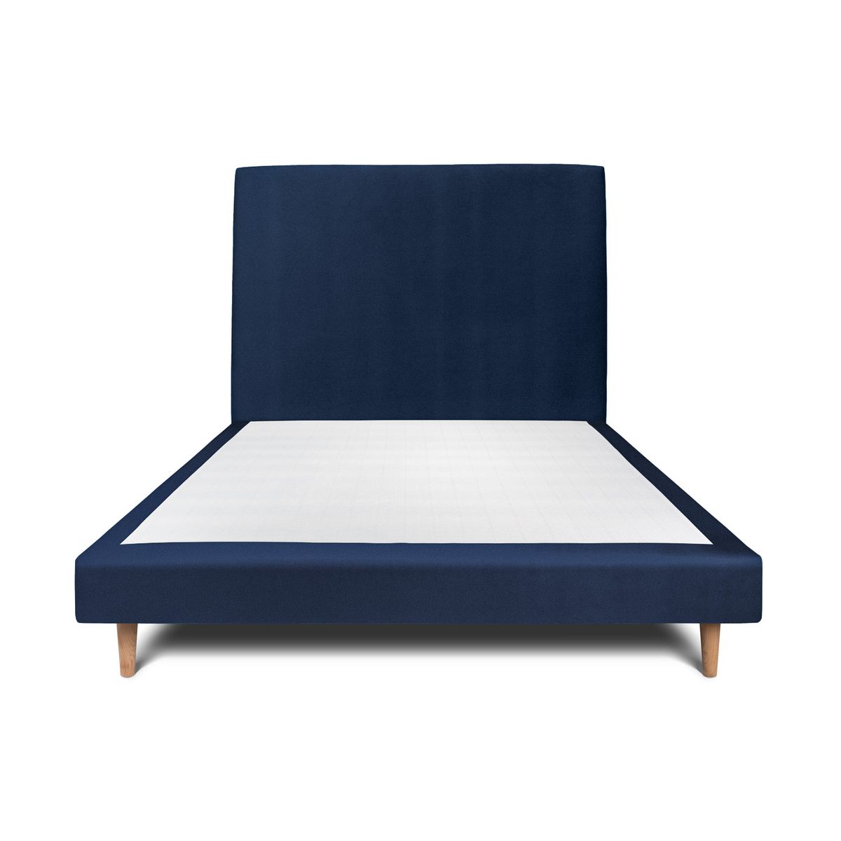 Lit cm avec tête de lit tapissier velours et sommier tapissier Bleu - Hauteur totale : 29cm