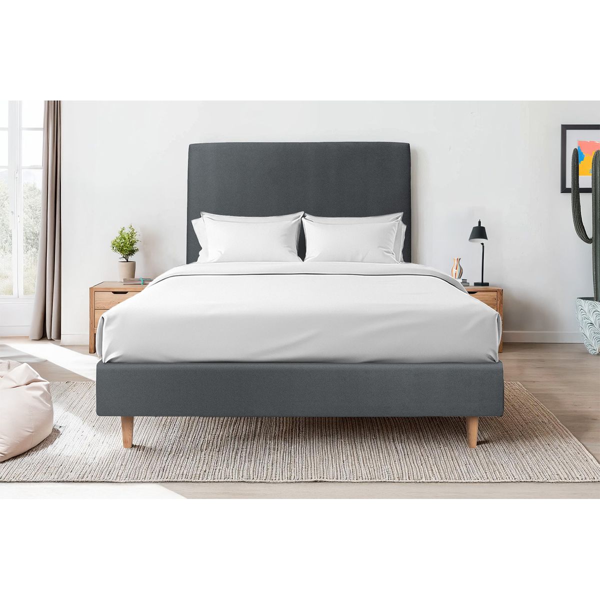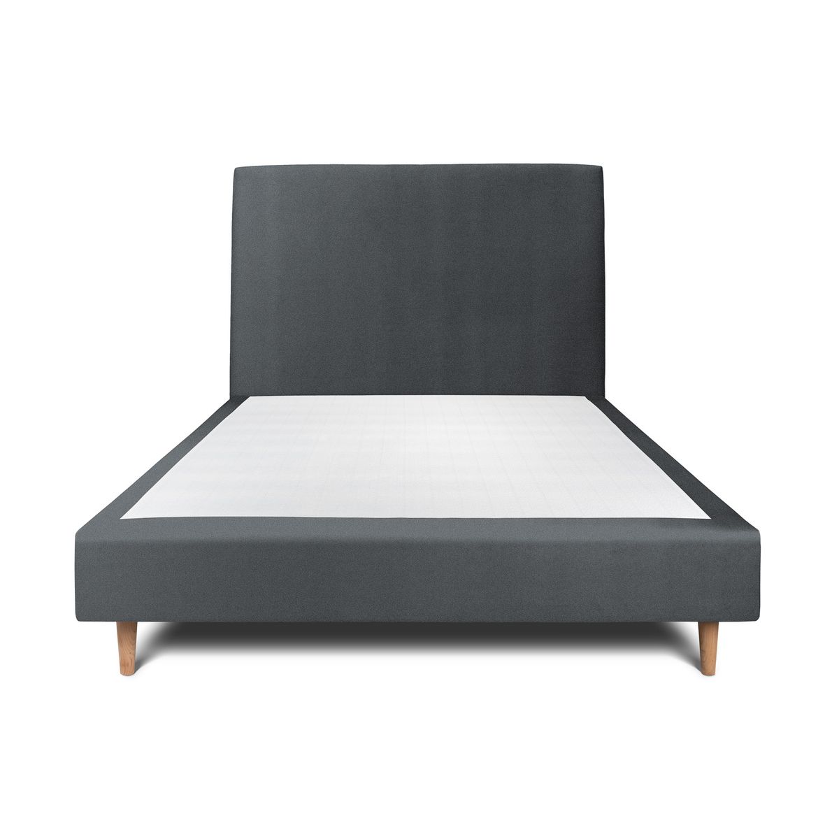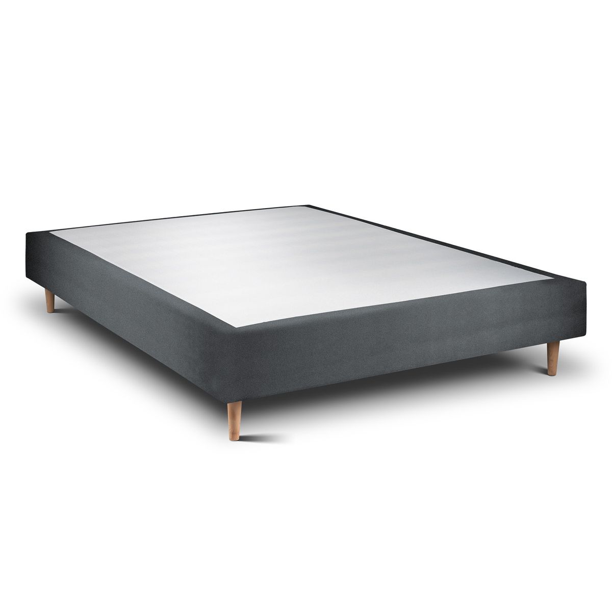 Lit cm avec tête de lit tapissier velours et sommier tapissier gris anthracite - Hauteur totale : 35cm