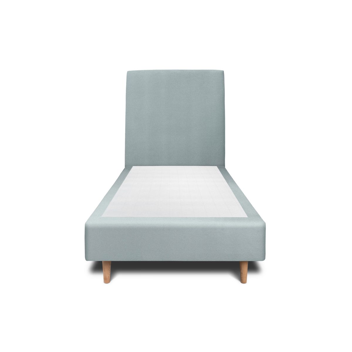 Lit cm avec tête de lit tapissier velours et sommier tapissier gris bleuté - Hauteur totale : 35cm