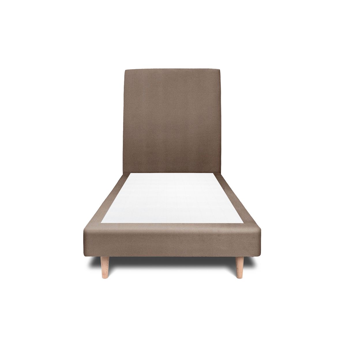 Lit cm avec tête de lit tapissier velours et sommier tapissier taupe - Hauteur totale : 29cm