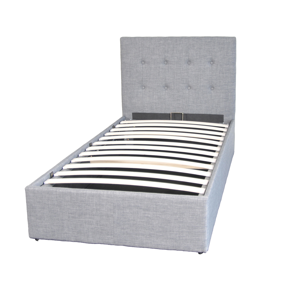 Offrant à votre enfant une surface de couchage de 90x190cm, le lit junior Mily est un indispensable de la chambre d'enfant. Très pratique grâce à son coffre, il est également confortable et robuste, conçu pour durer dans le temps. Cadre : MDF + Mousse + Tissu. Tête de lit capitonnée. Fond du coffre en tissu. Sommier 12 lattes en peuplier. Lit coffre gris Sommier et tête de lit inclus Principe de manipulation des vérins : A la 1ère manipulation, vous remarquerez que les vérins sont durs : cela est tout à fait normal. Lorsque le sommier et le matelas sont en position ouverte placez vous au milieu du lit puis appuyer fortement pour le fermer. Par la suite vous verrez que cette manoeuvre se fera facilement et sans difficultés. Poids net : 46.1 kg Lit coffre : 100 x 201 x 31.5 - 99 cm Dimension couchage: 90 x 190 cm Lit coffre livré avec sommier, avec tête de lit et sans matelas, à monter, avec notice incluse. Produit garanti 24 mois