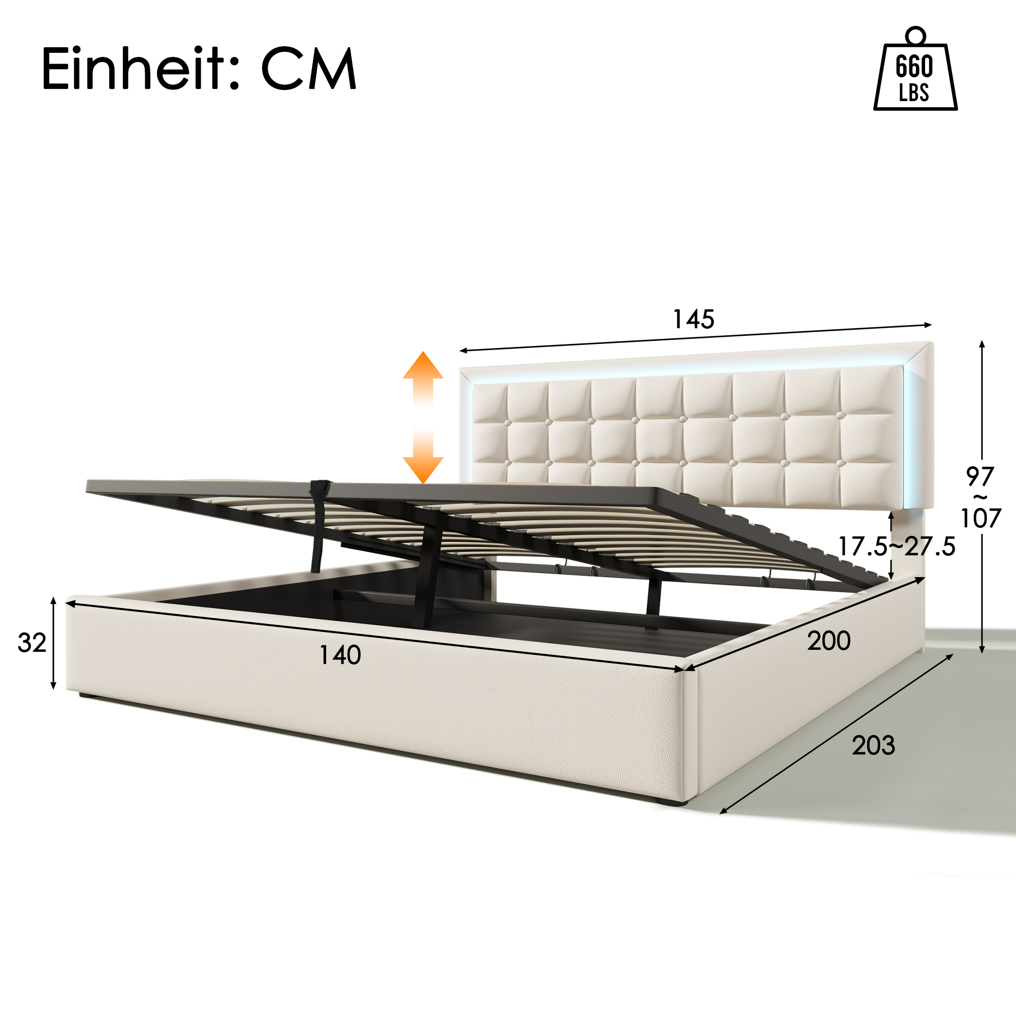 | Libellé | Lit Coffre Adulte 140X200cm, Lit Double Avec Élairage LED Et Sommier, PU, Blanc, Sans Matelas |