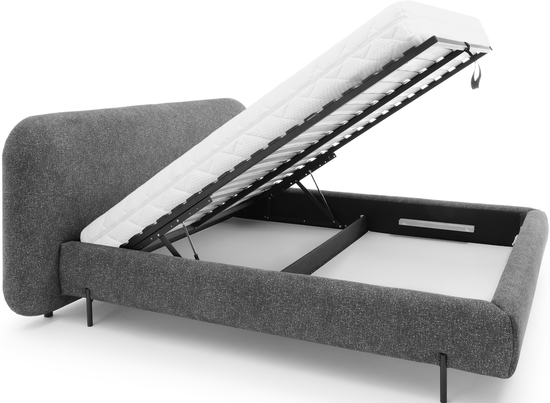 Lit coffre Booby prestige – Velours moderne et rangement optimisé-Couleur Gris chiné-140x200