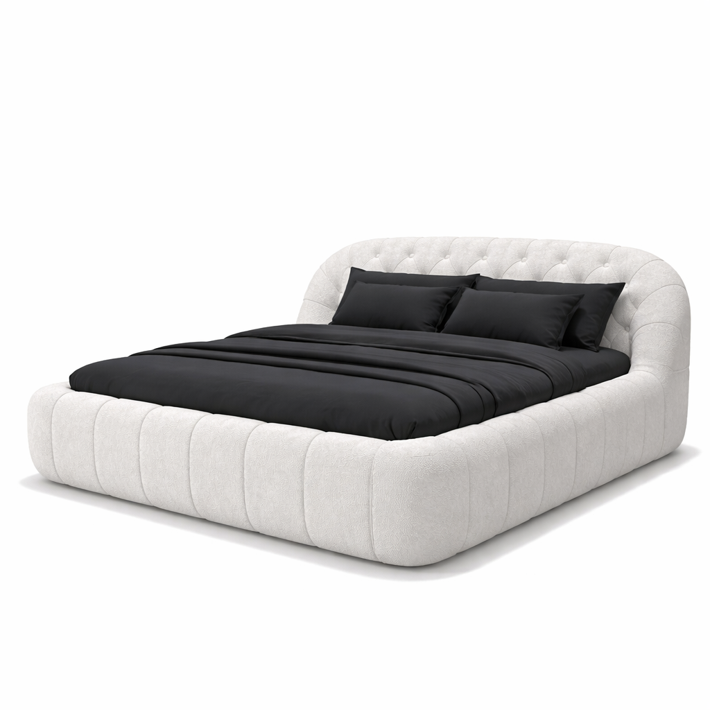 Le lit coffre Byblos combine design iconique et fonctionnalité intelligente. Son revêtement en tissu bouclette blanc, à la texture douce et subtilement texturée, apporte une touche chaleureuse et sophistiquée à la chambre. Très apprécié pour son effet enveloppant et son rendu haut de gamme, il crée une atmosphère cocooning tout en affirmant un style moderne et raffiné. Son blanc lumineux capte la lumière et agrandit visuellement l’espace pour une ambiance élégante et apaisante.