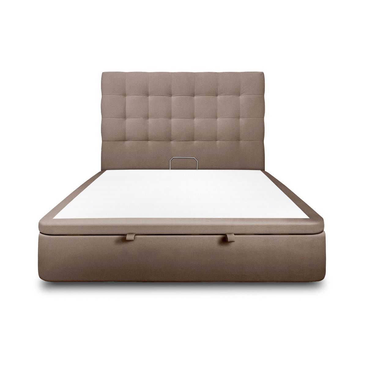 Lit coffre cm avec tête de lit capitonnée Velours Taupe - Hauteur totale : 39cm