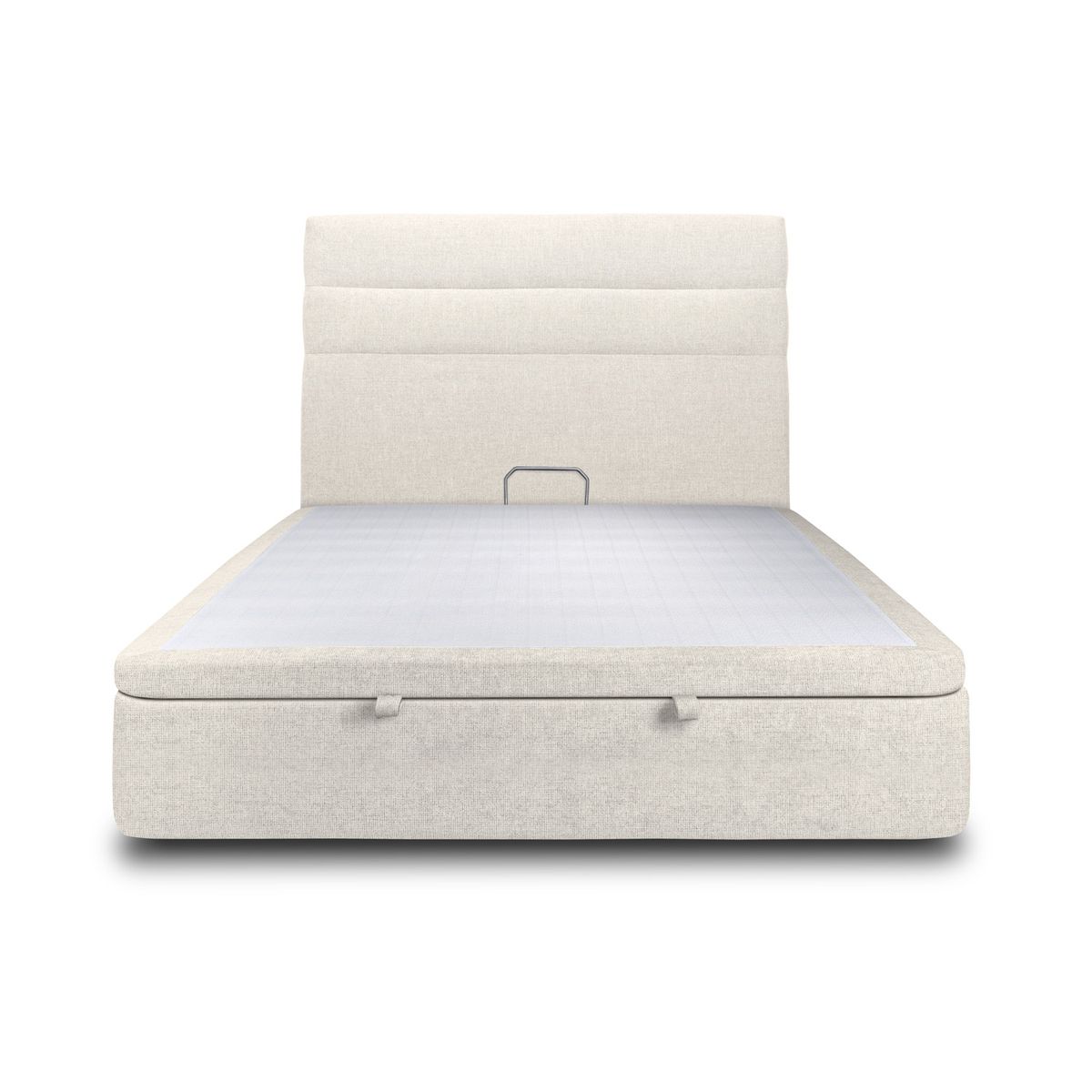 Lit coffre cm avec tête de lit lignes Tissu Beige clair - Hauteur totale : 39cm
