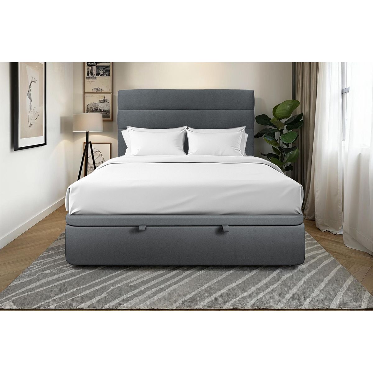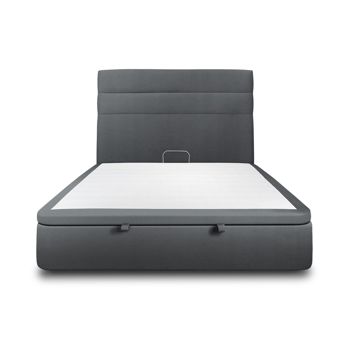 Lit coffre cm avec tête de lit lignes Velours Gris anthracite - Hauteur totale : 39cm
