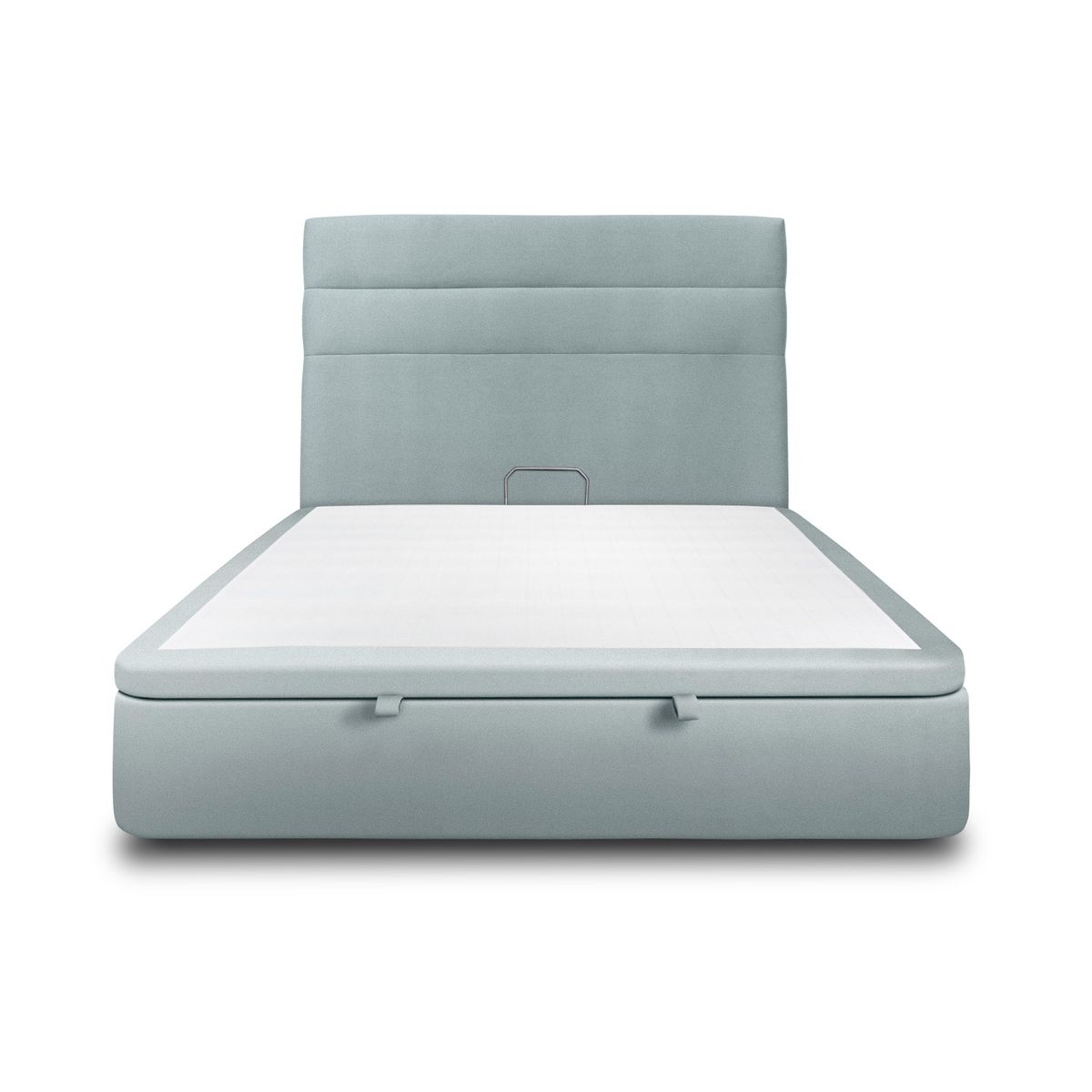 Lit coffre cm avec tête de lit lignes Velours Gris bleuté - Hauteur totale : 39cm
