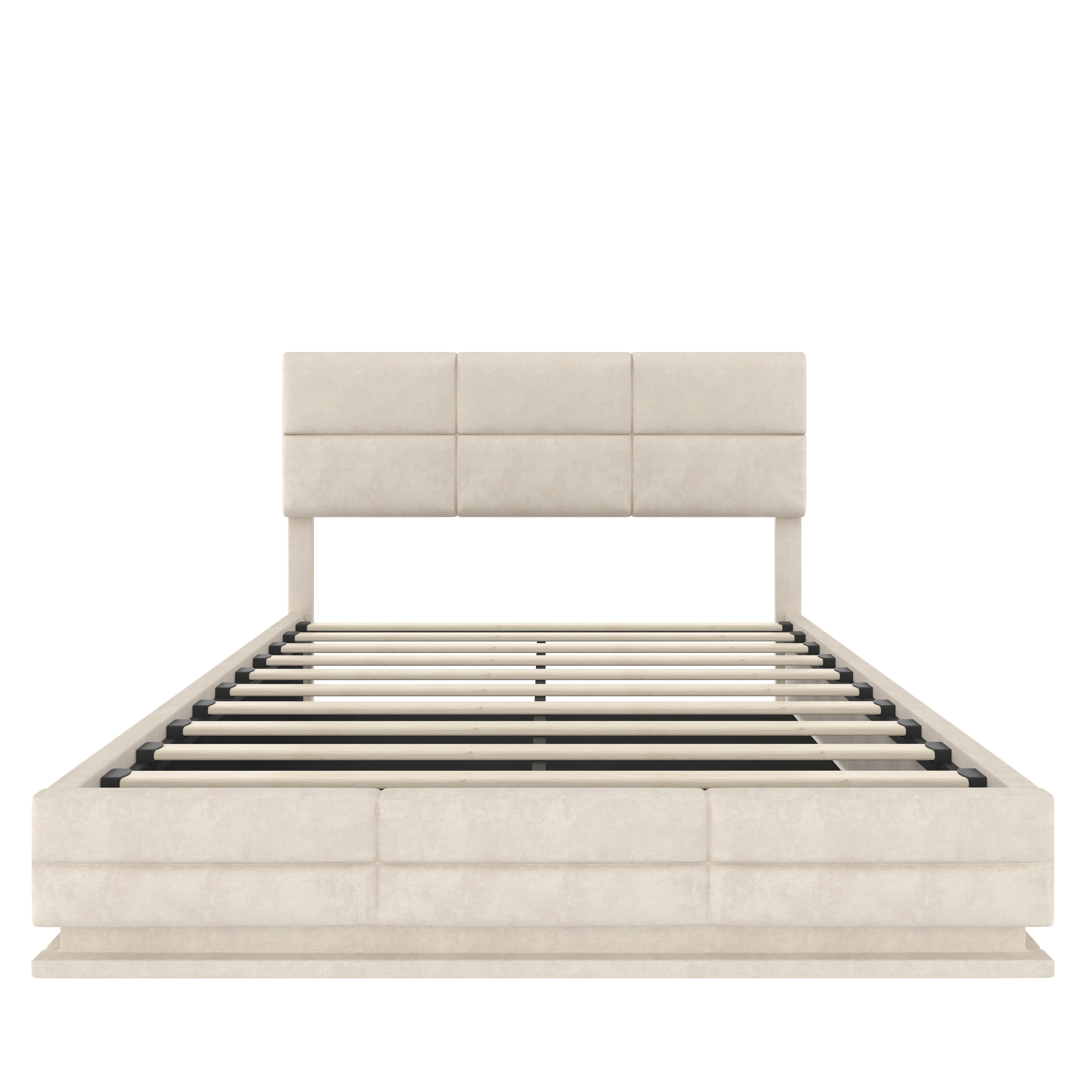 | Libellé | Lit Coffre Double 140x200cm avec LED, USB/Type-C, Tête de Lit Réglable, Lit Adulte avec Sommier, en Velours Beige, sans Matelas |