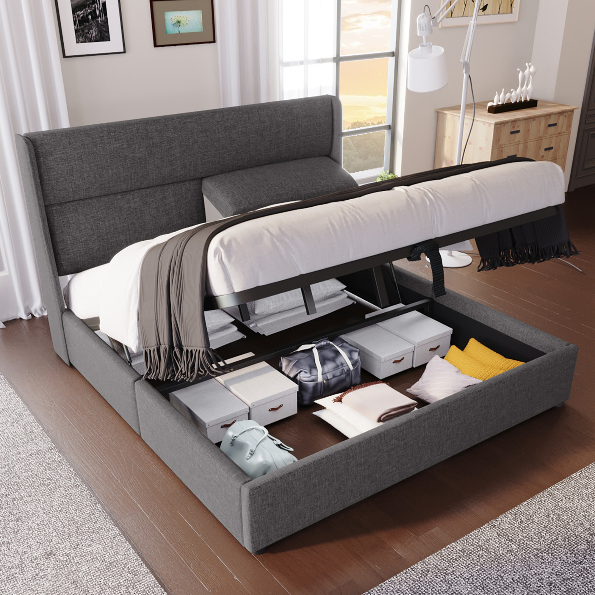 【Lit de rangement moderne et pratique】 : Ce lit de rangement hydraulique gris offre un espace de rangement spacieux grâce à un système hydraulique. L'espace de rangement spacieux offre beaucoup de place pour votre literie, vos oreillers, etc., vous permettant d'organiser, d'aménager et de ranger votre chambre à coucher en toute tranquillité. Le sommier à lattes métallique peut être facilement relevé et abaissé à l'aide des vérins de levage et peut être actionné sans difficulté par une seule personne.