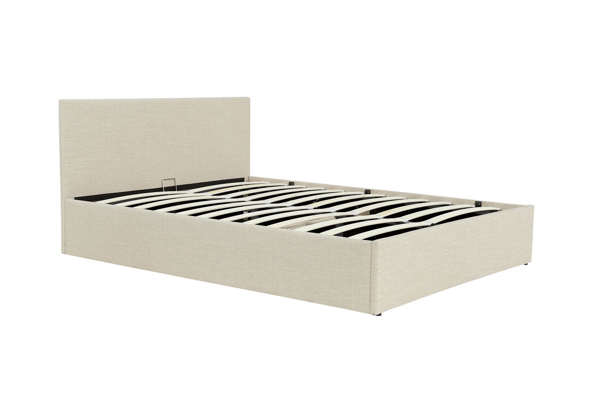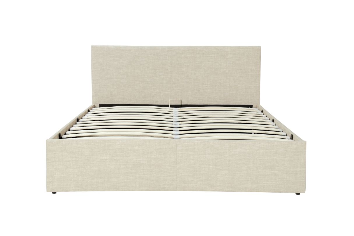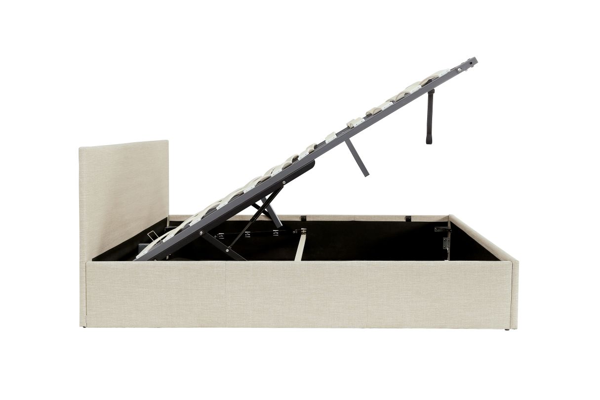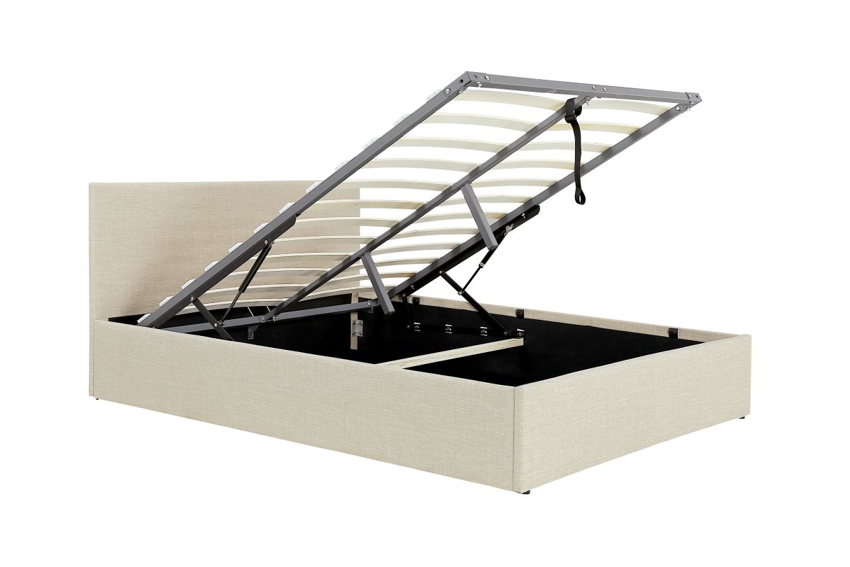 | Libellé | Lit coffre GASPARD avec sommier à lattes et tête de lit en tissu - Beige - 160x200cm |