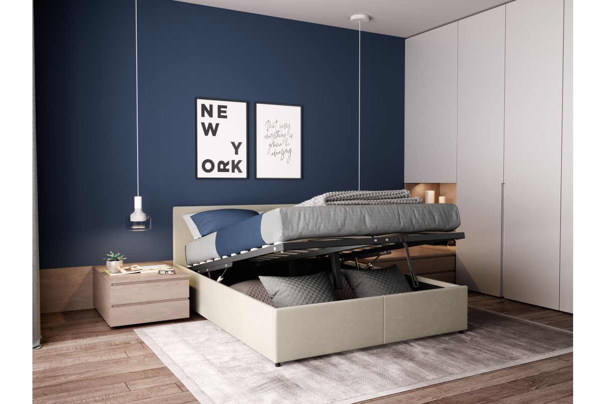 Avec son sommier à lattes inclus, le lit GASPARD offre un soutien parfait pour des nuits réparatrices. Disponible en deux dimensions, 140x190 cm ou 160x200 cm, il est idéal pour accueillir deux personnes avec tout le confort nécessaire. Son atout majeur ? Un coffre de rangement intégré, spacieux et facile d'accès grâce à un mécanisme pratique. Parfait pour ranger couvertures, oreillers, linge de maison ou vêtements, il vous permet de garder une chambre organisée et agréable. Le lit GASPARD ne fait aucun compromis sur le style. Sa tête de lit élégamment rembourrée en tissu apporte une touche raffinée et cosy à votre intérieur. Disponible en trois coloris tendance : beige, gris foncé et gris clair, il s'adapte à tous les univers déco, qu'ils soient modernes, minimalistes ou classiques.