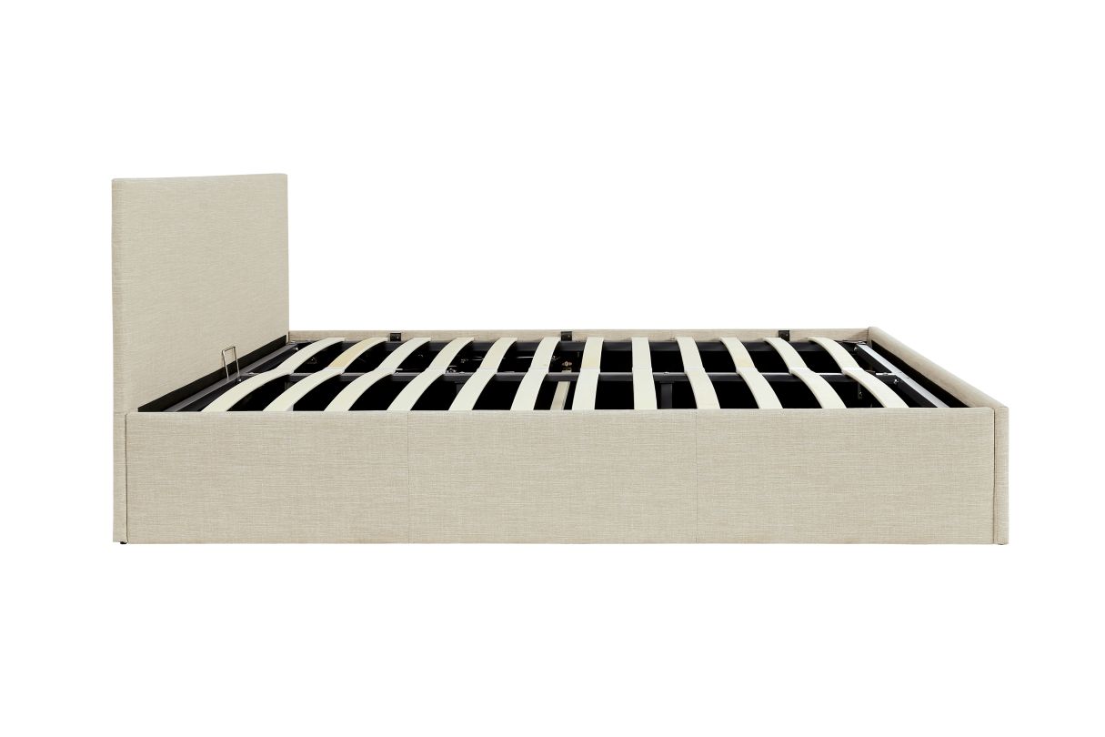 Lit coffre GASPARD avec sommier à lattes et tête de lit en tissu - Beige - 160x200cm
