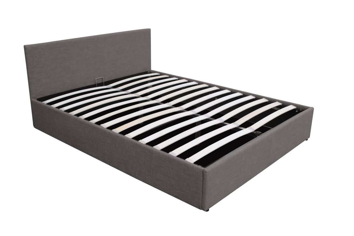 | Libellé | Lit coffre GASPARD avec sommier à lattes et tête de lit en tissu - Gris foncé - 140x190cm |