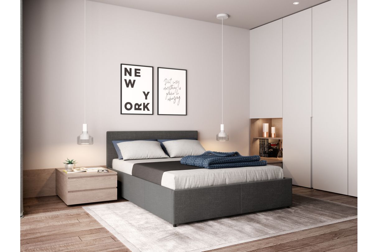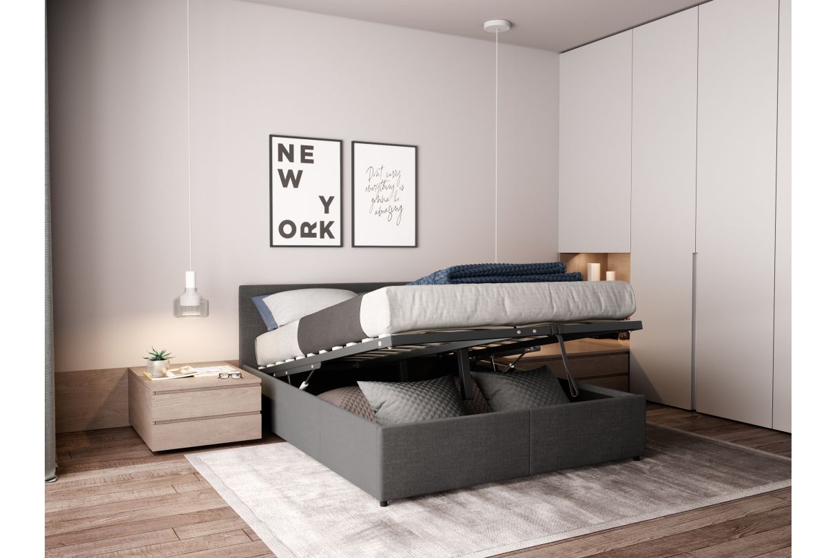 Avec son sommier à lattes inclus, le lit GASPARD offre un soutien parfait pour des nuits réparatrices. Disponible en deux dimensions, 140x190 cm ou 160x200 cm, il est idéal pour accueillir deux personnes avec tout le confort nécessaire. Son atout majeur ? Un coffre de rangement intégré, spacieux et facile d'accès grâce à un mécanisme pratique. Parfait pour ranger couvertures, oreillers, linge de maison ou vêtements, il vous permet de garder une chambre organisée et agréable. Le lit GASPARD ne fait aucun compromis sur le style. Sa tête de lit élégamment rembourrée en tissu apporte une touche raffinée et cosy à votre intérieur. Disponible en trois coloris tendance : beige, gris foncé et gris clair, il s'adapte à tous les univers déco, qu'ils soient modernes, minimalistes ou classiques.