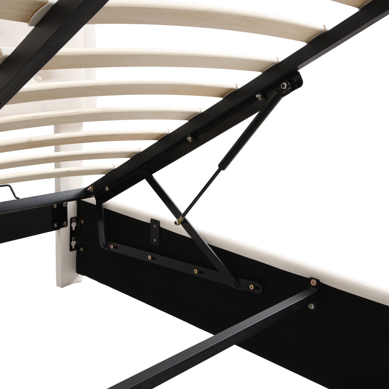 Lit coffre hydraulique lit 140x190, lit 2 places adulte, lit de rangement hydraulique avec 2 tiroirs et tête de lit réglable en hauteur, Cadre en fer, lattes en bois, peut supporter 300 kg, Tissu en velours, doux pour la peau et confortable, beige, sans fond, sans matelas.