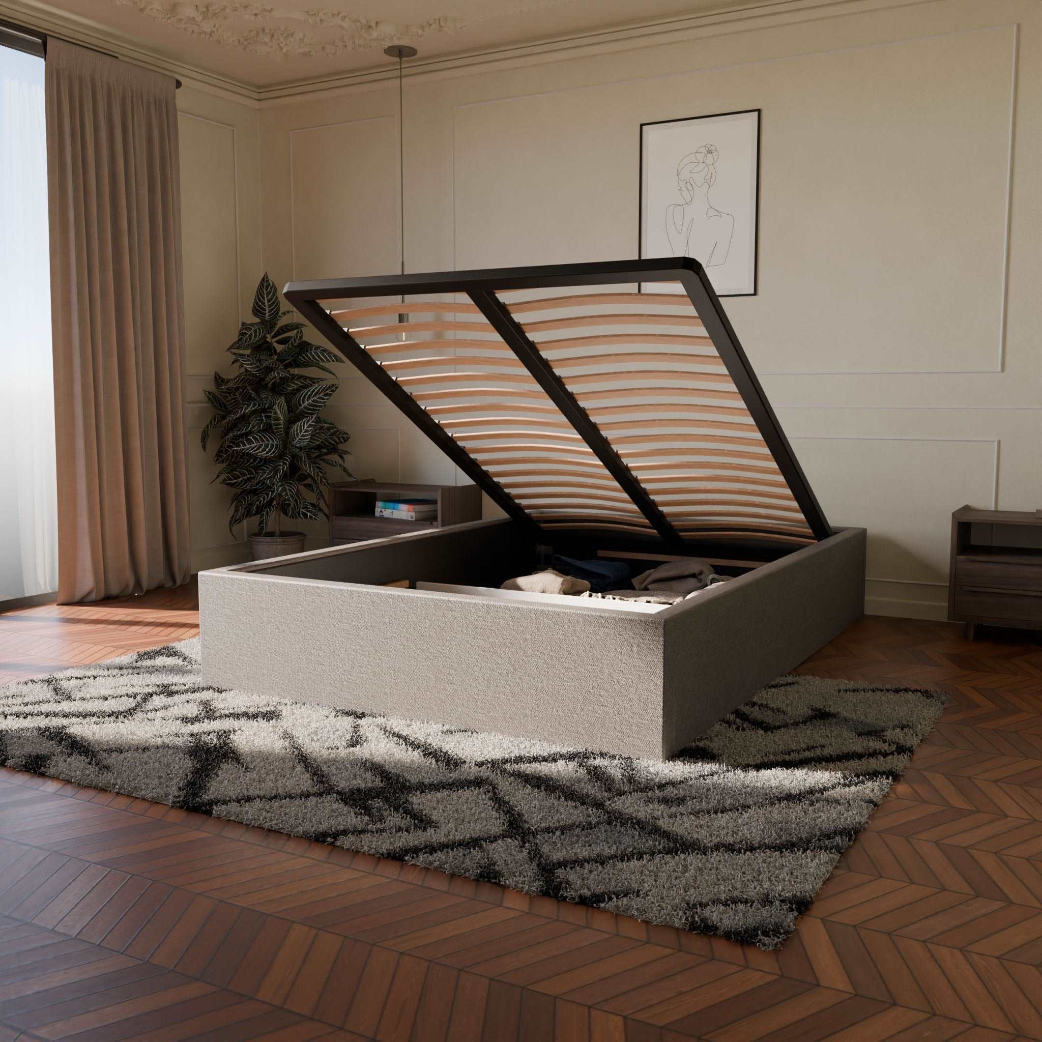 Lit Coffre & Matelas Hybride Luxe - 3 coloris - Sans tête de lit - Mémoire de forme - Grande capacité de