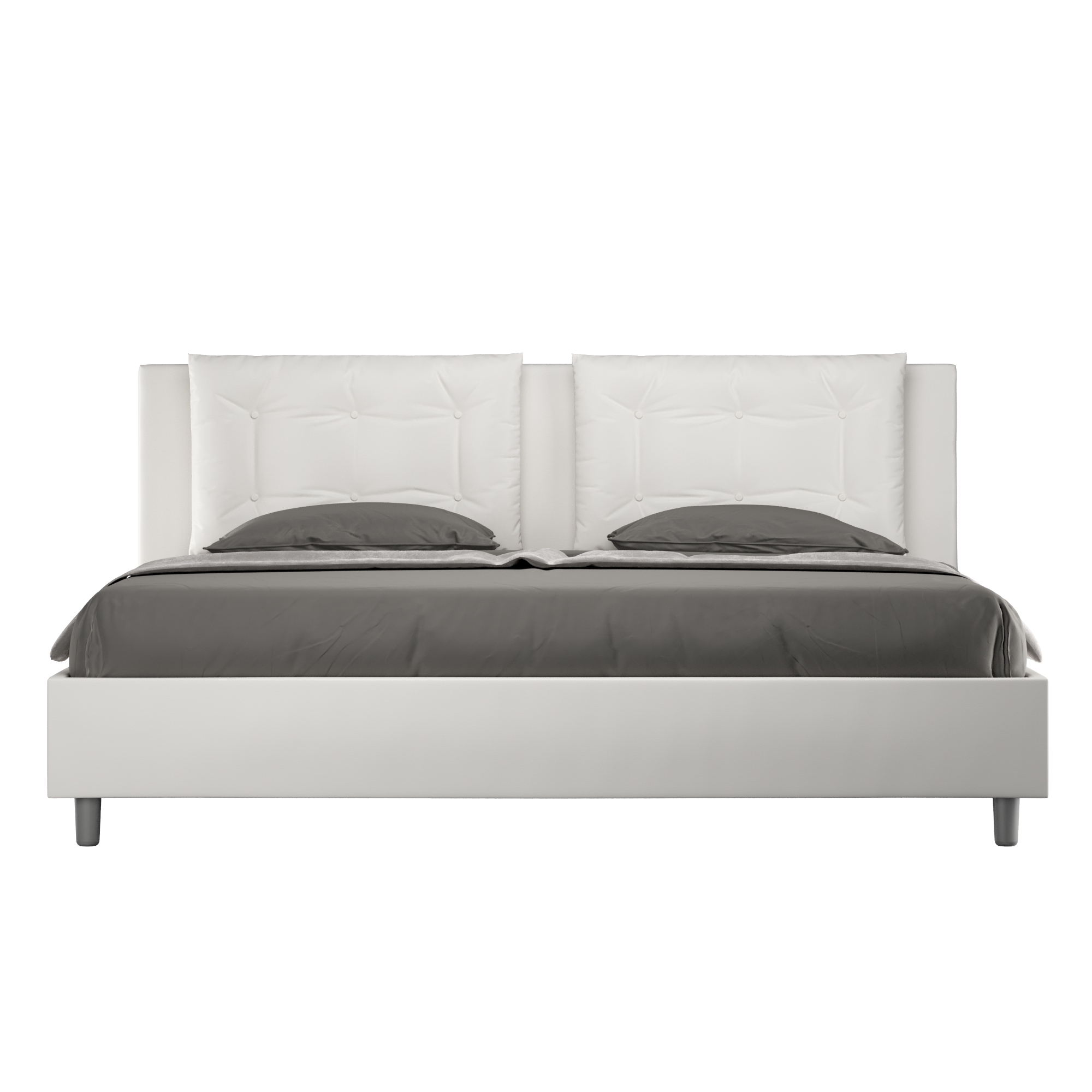 Lit coffre 180x190 Annalisa avec tête de lit et cadre de lit rembourrés, revêtement en PU, particulièrement polyvalent et facile à assortir à tout style de décoration. Le lit coffre 180x190 Annalisa est caractérisé par un style élégant et raffiné grâce aux grands coussins présents sur la tête de lit, il est entièrement revêtu en PU. La présence du PU, en plus de donner à la pièce une atmosphère chaleureuse et accueillante, offre la commodité d'un nettoyage facile et rapide, grâce à l'utilisation d'un simple chiffon en microfibre. Lit fourni avec un sommier à rangement, prévu pour un matelas de 180x190 cm - Matelas non inclus. Revêtement de lit non déhoussable. Produit Ityhome Made in Italy Dimensions: L.195 P.202 H.110 cm Hauteur pieds: 12 cm Hauteur du cadre de lit: 27 cm Hauteur du sommier depuis le sol: 38 cm Dimensions utiles du rangement: L.183 P.194 H.21 cm