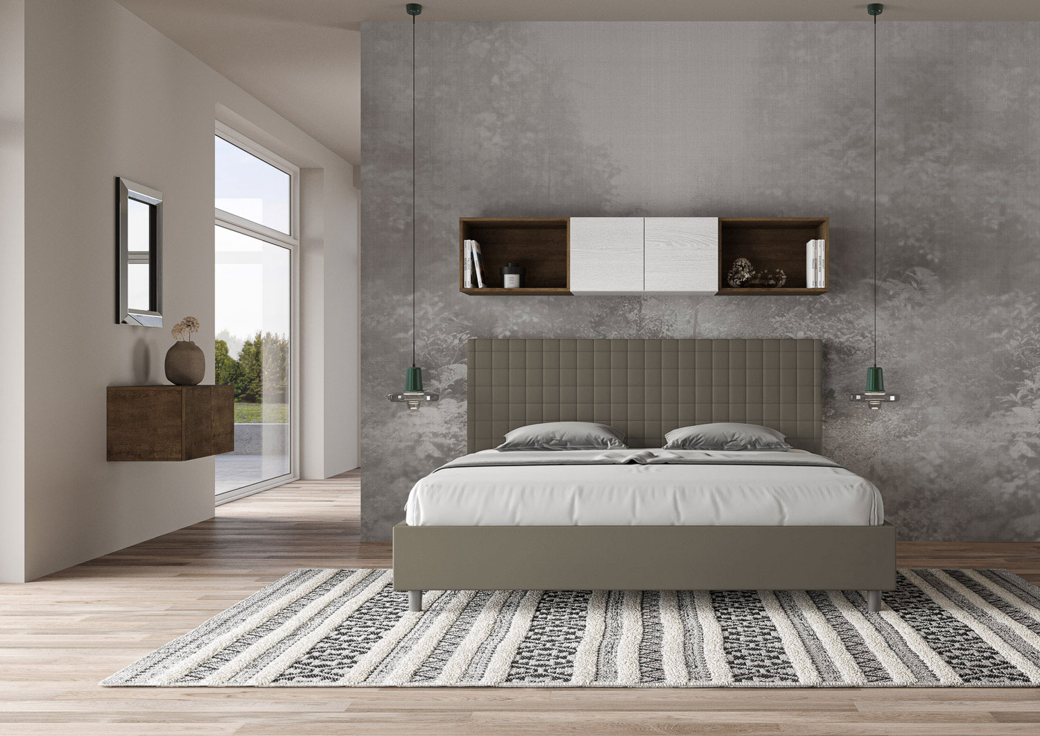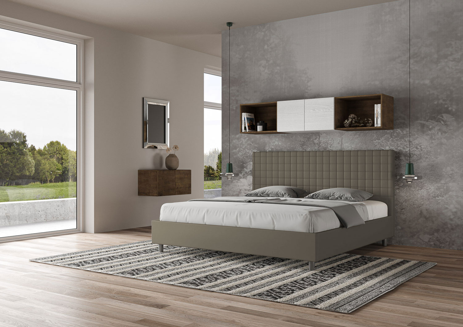 Lit coffre 180x190 Sunny avec tête de lit et cadre de lit rembourrés, revêtement en PU, particulièrement polyvalent et facile à assortir à tout style de décoration. Le lit coffre 180x190 Sunny est caractérisé par un style moderne et élégant, mis en valeur par la tête de lit matelassée revêtue en PU. La présence du PU, en plus de donner à la pièce une atmosphère chaleureuse et accueillante, offre la commodité d'un nettoyage facile et rapide, grâce à l'utilisation d'un simple chiffon en microfibre. Lit fourni avec un sommier à rangement, prévu pour un matelas de 180x190 cm - Matelas non inclus. Revêtement de lit non déhoussable. Produit Ityhome Made in Italy Dimensions: L.195 P.210 H.122 cm Hauteur pieds: 12 cm Hauteur du cadre de lit: 27 cm Hauteur du sommier depuis le sol: 38 cm Dimensions utiles du rangement: L.183 P.194 H.21 cm