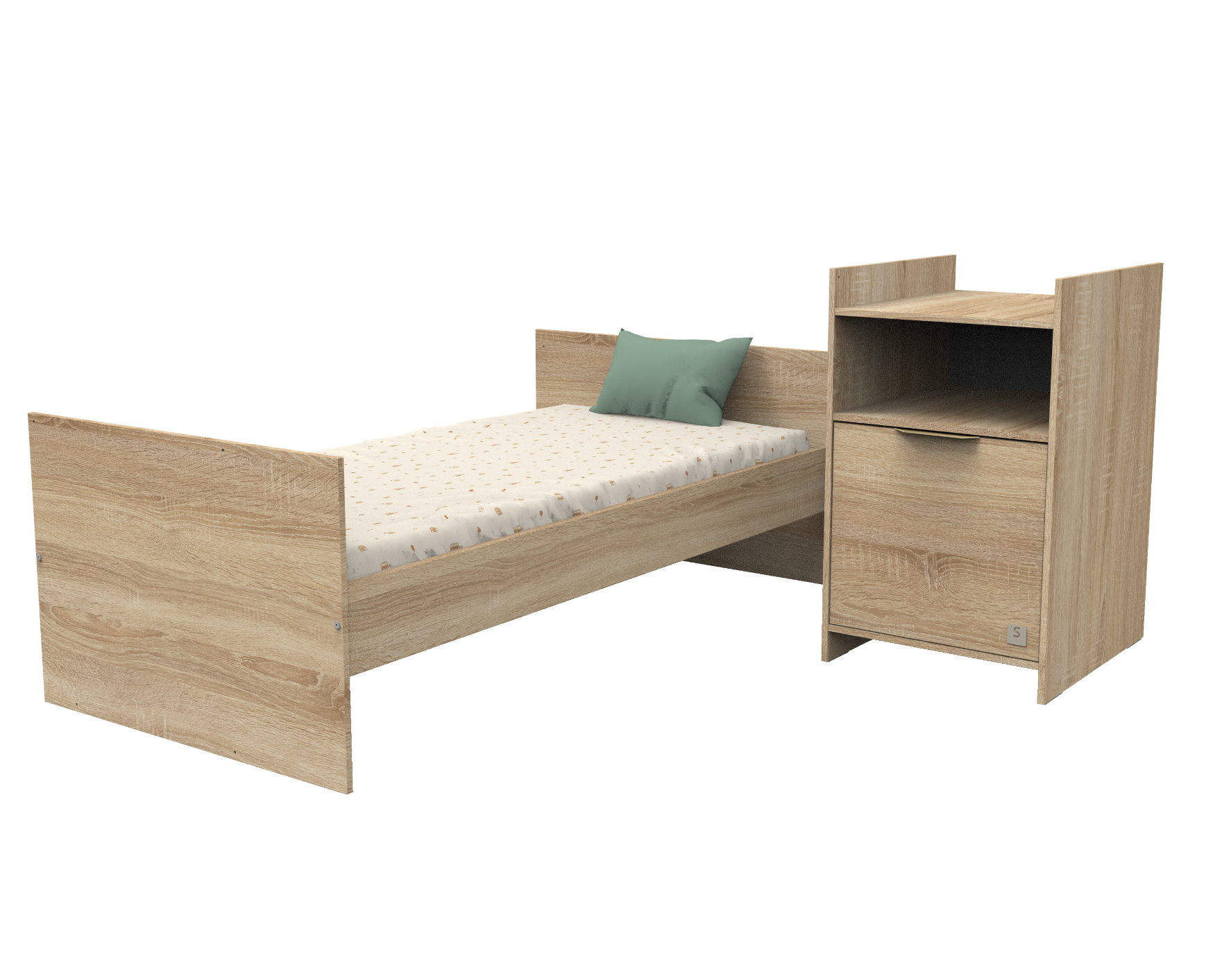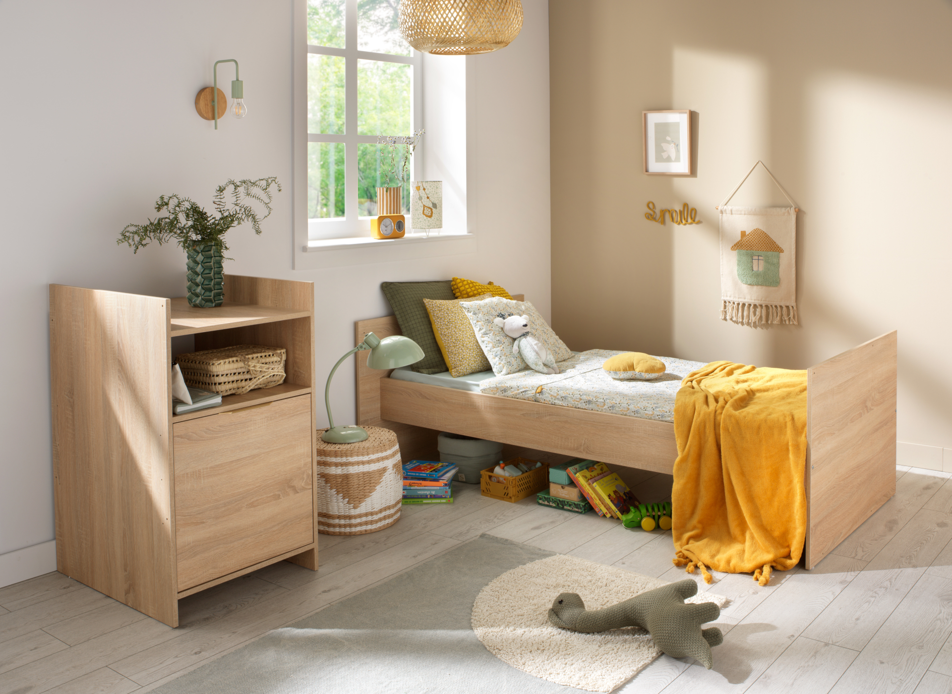 Lit combiné 120x60 évolutif en 90x190 avec porte décor chêne doré