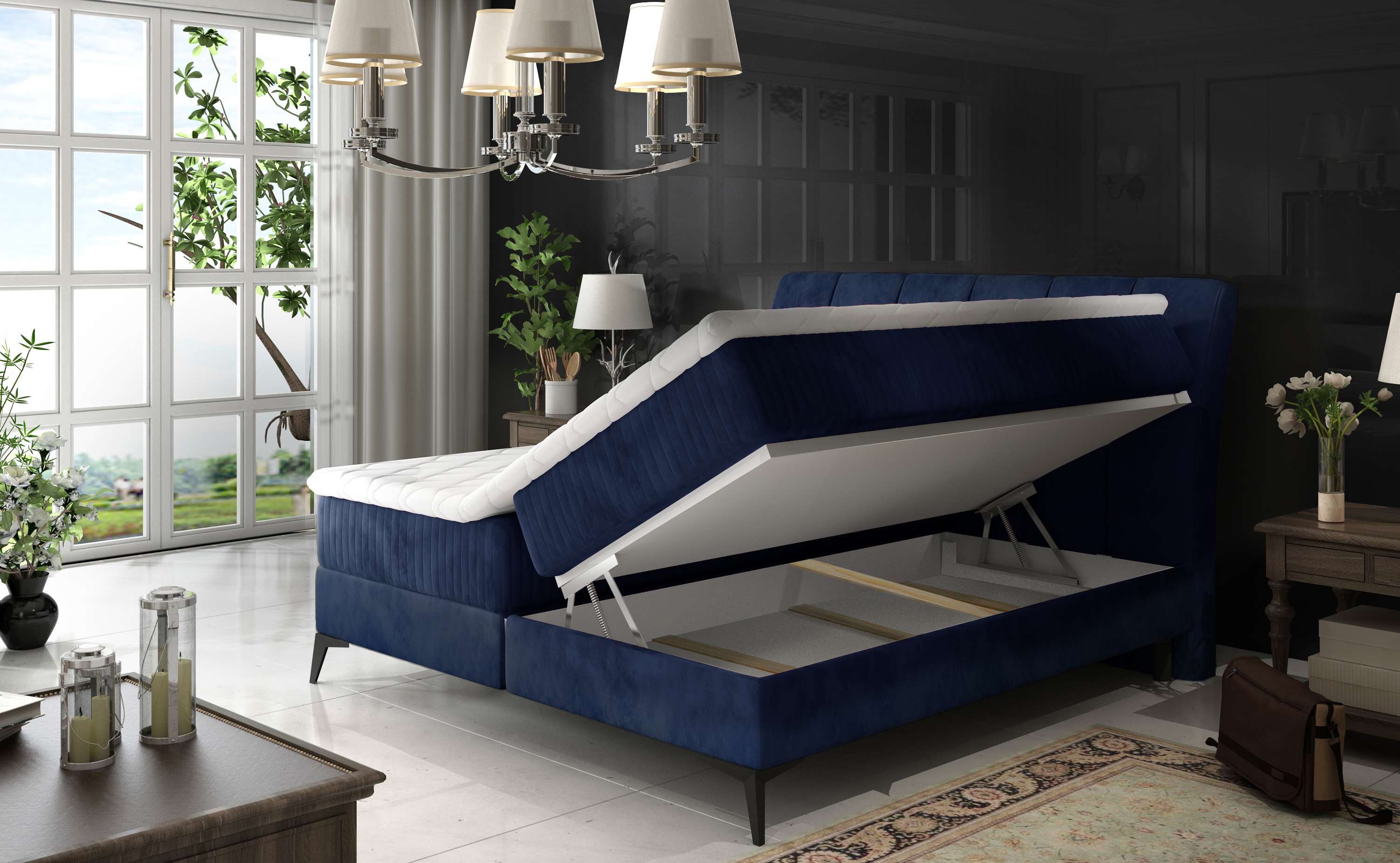 Lit continental moderne avec matelas velours abricot Brato-160x200
