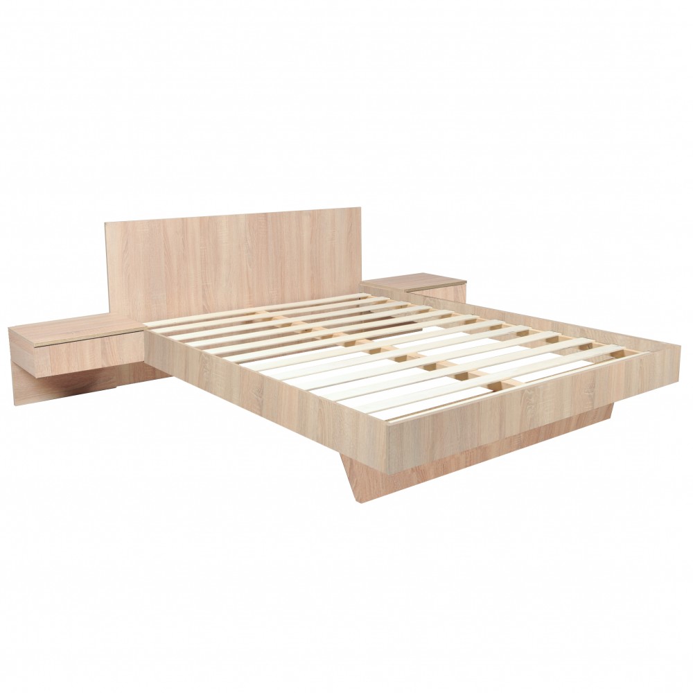 Lit COOL 140x190 cm + 2 chevets + sommier / Décor Chêne blanchi