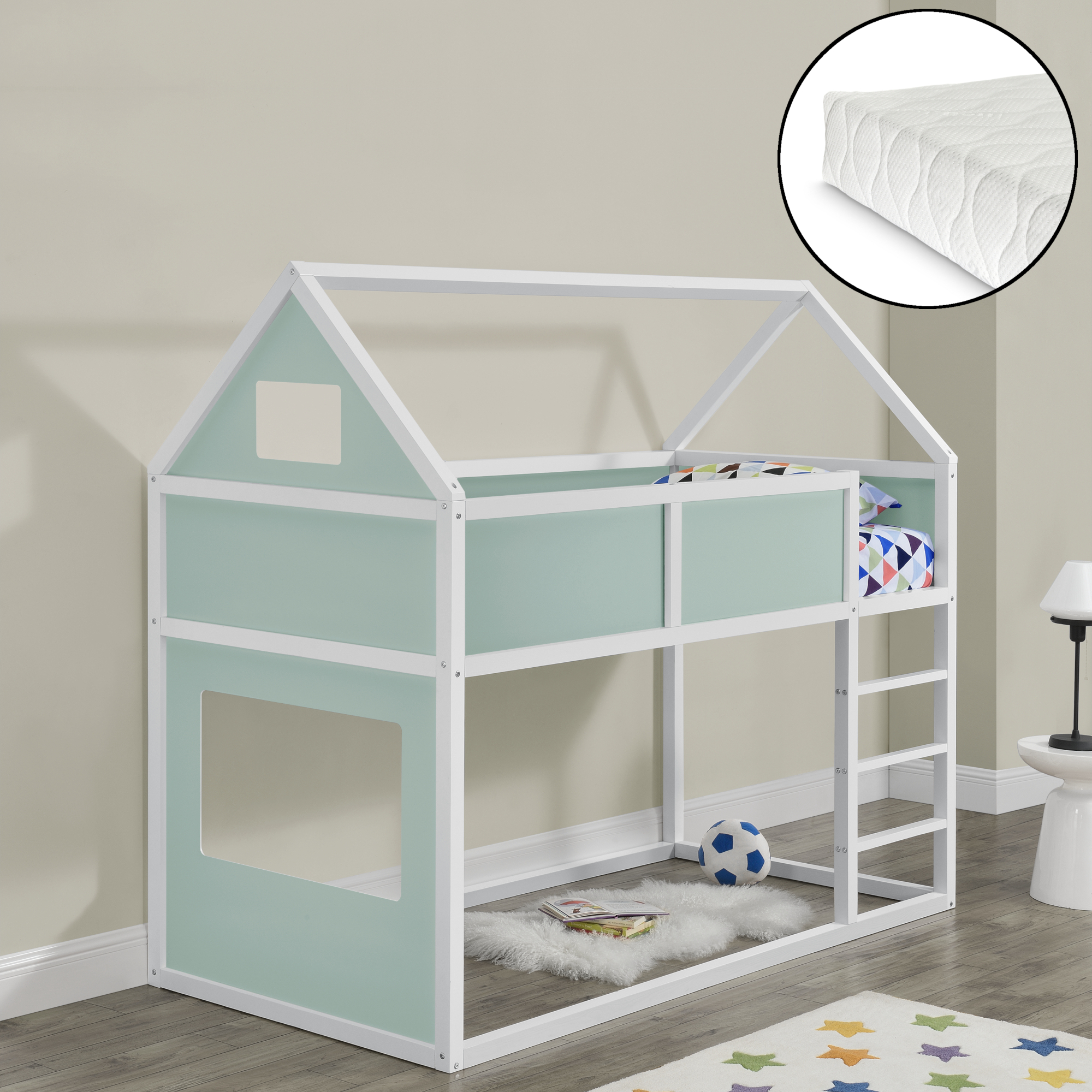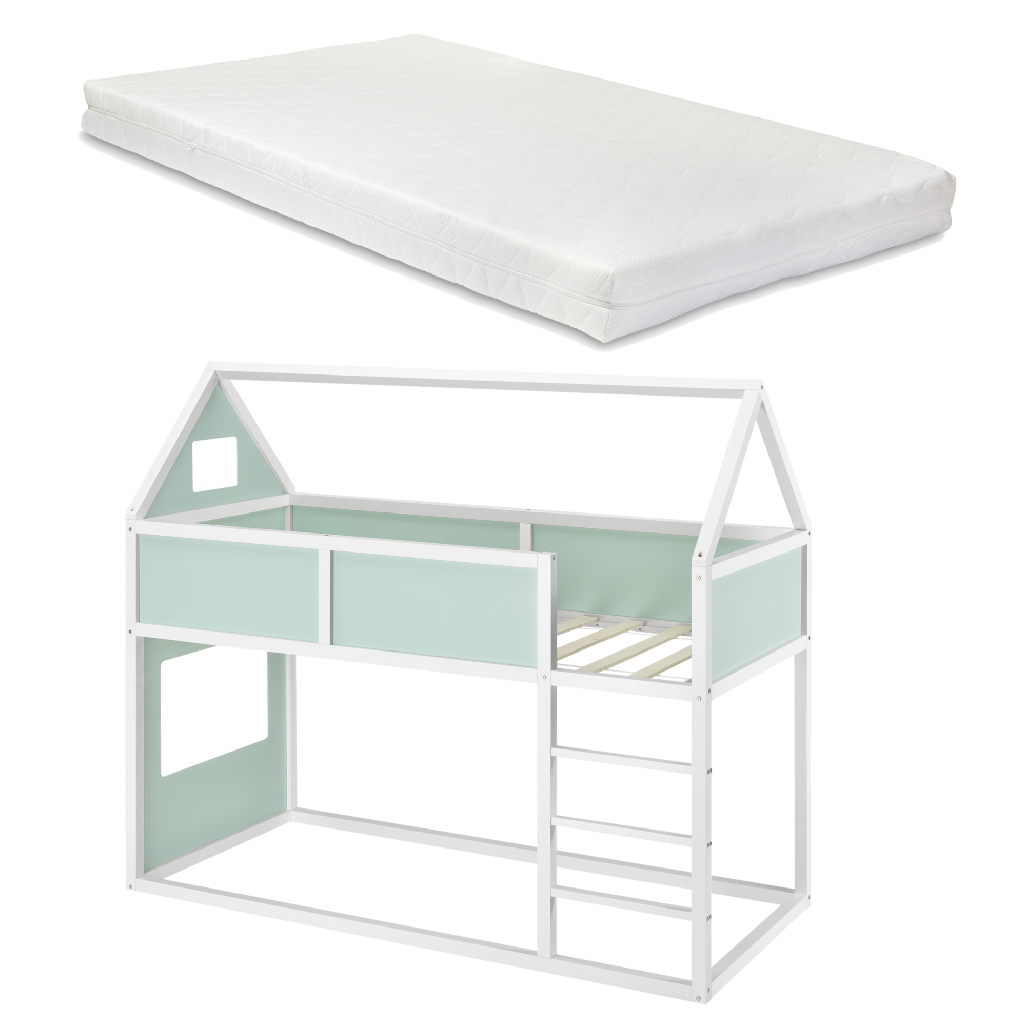 Lit d'Enfant Mezzanine Quedlinburg avec Matelas Mousse à Froid 90 x 200 cm Menthe [en.casa]