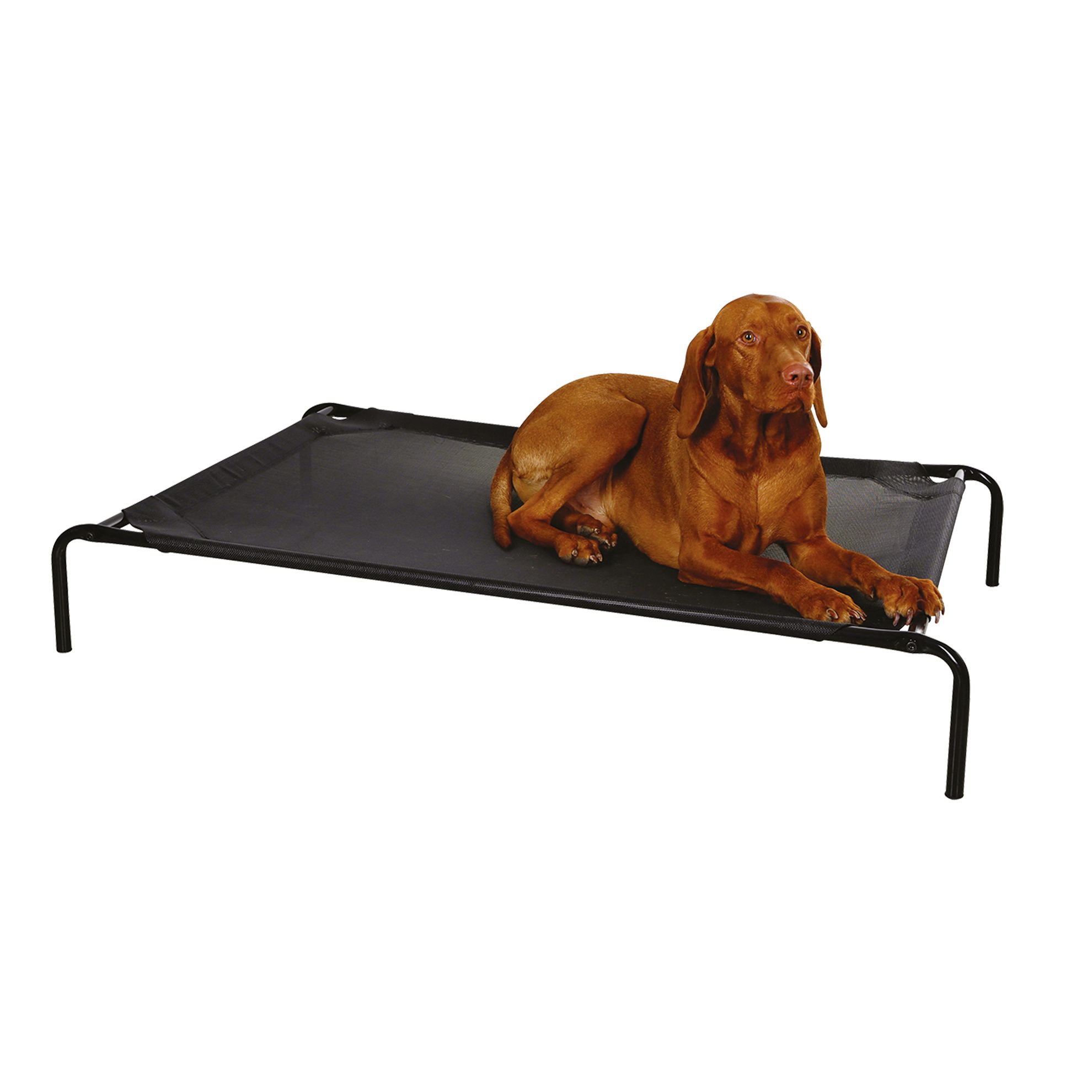 Idéal en intérieur ou extérieur, ce lit de camp permettra à votre chien de s'isoler du froid du carrelage ou des puces et des tiques de votre jardin.Son cadre en métal tubulaire résistant ainsi que sa toile en polyester enduite, font de ce lit pliant un endroit parfait pour que votre animal s'y repose. 2 dimensions disponibles. Lit de camp Kerbl pour chien ou chat. Peut être mis en intérieur pour isoler votre chien du froid ou en extérieur. Idéal pour les chiens qui souffre d'arthrite, ce lit de camp leur permettra d'être confortablement installés. Composé d'une toile en polyester enduit de PVC déperlant pour u nettoyage facile. Cadre tubulaire en métal pour la solidité. La couleur noire lui confère un aspect moderne. Facile à monter ou à démonter, ce lit pliant pour chien prendra très peu de place une fois rangé. 2 dimensions : Taille M (L1725) : 107 x 65 x 20 cm - Poids maxi recommandé : 25 kg Taille L (L1726) : 130 x 80 x 20 cm - Poids maxi recommandé : 35 kg