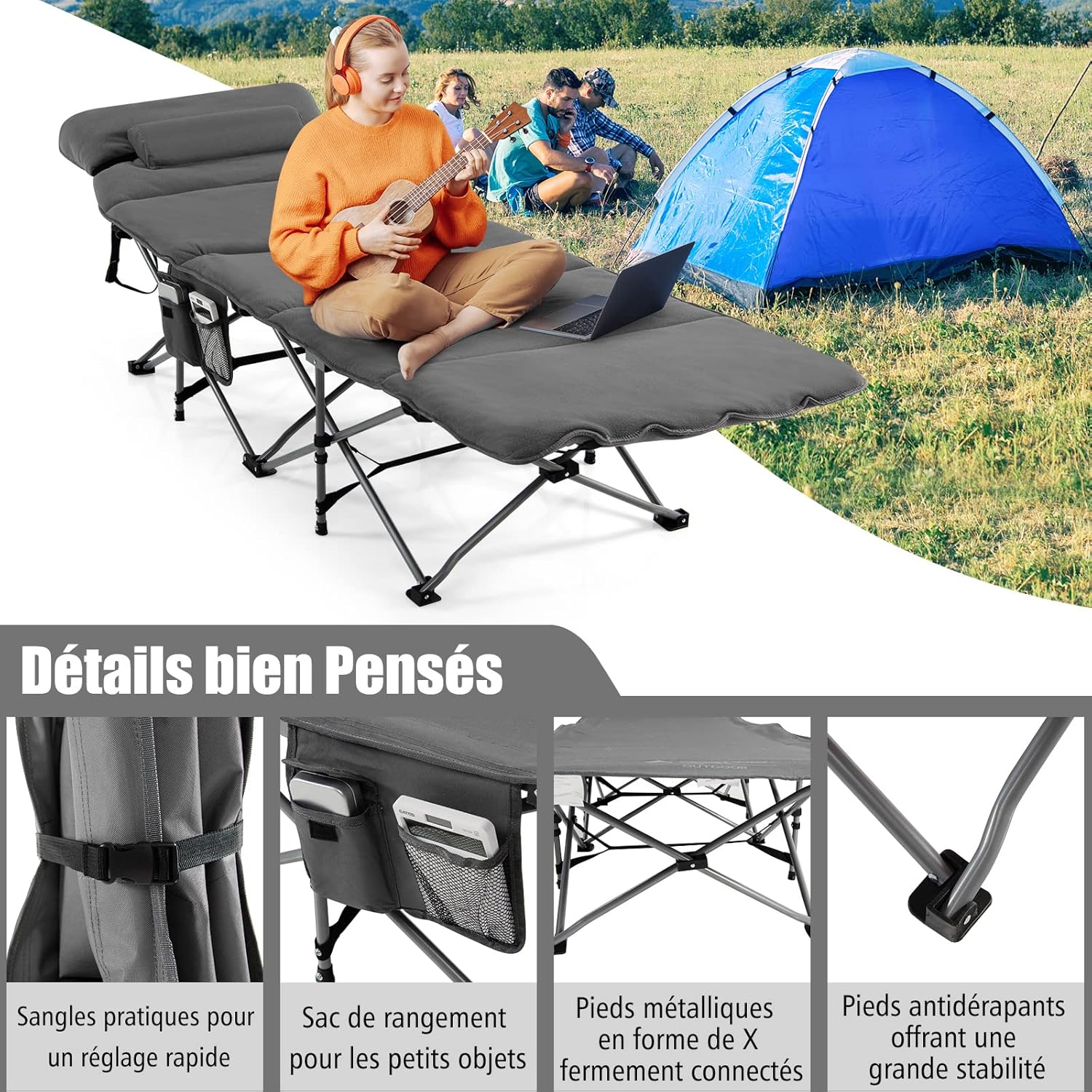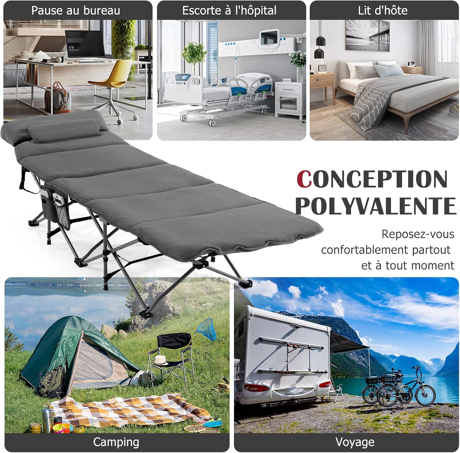 | Libellé | Lit de camping pliant avec matelas et oreiller amovibles, lit de couchage portable avec sac de transport |