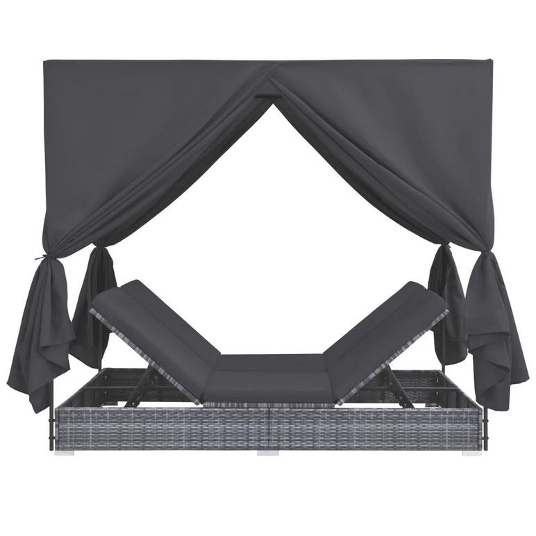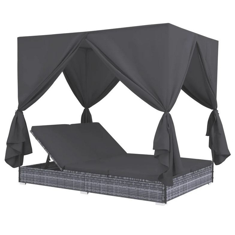 Lit de jardin à baldaquin polyester et résine tressée gris Uvo