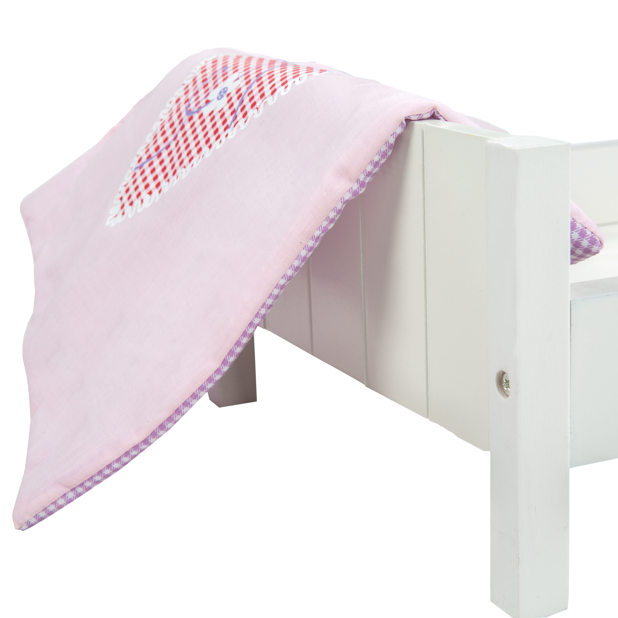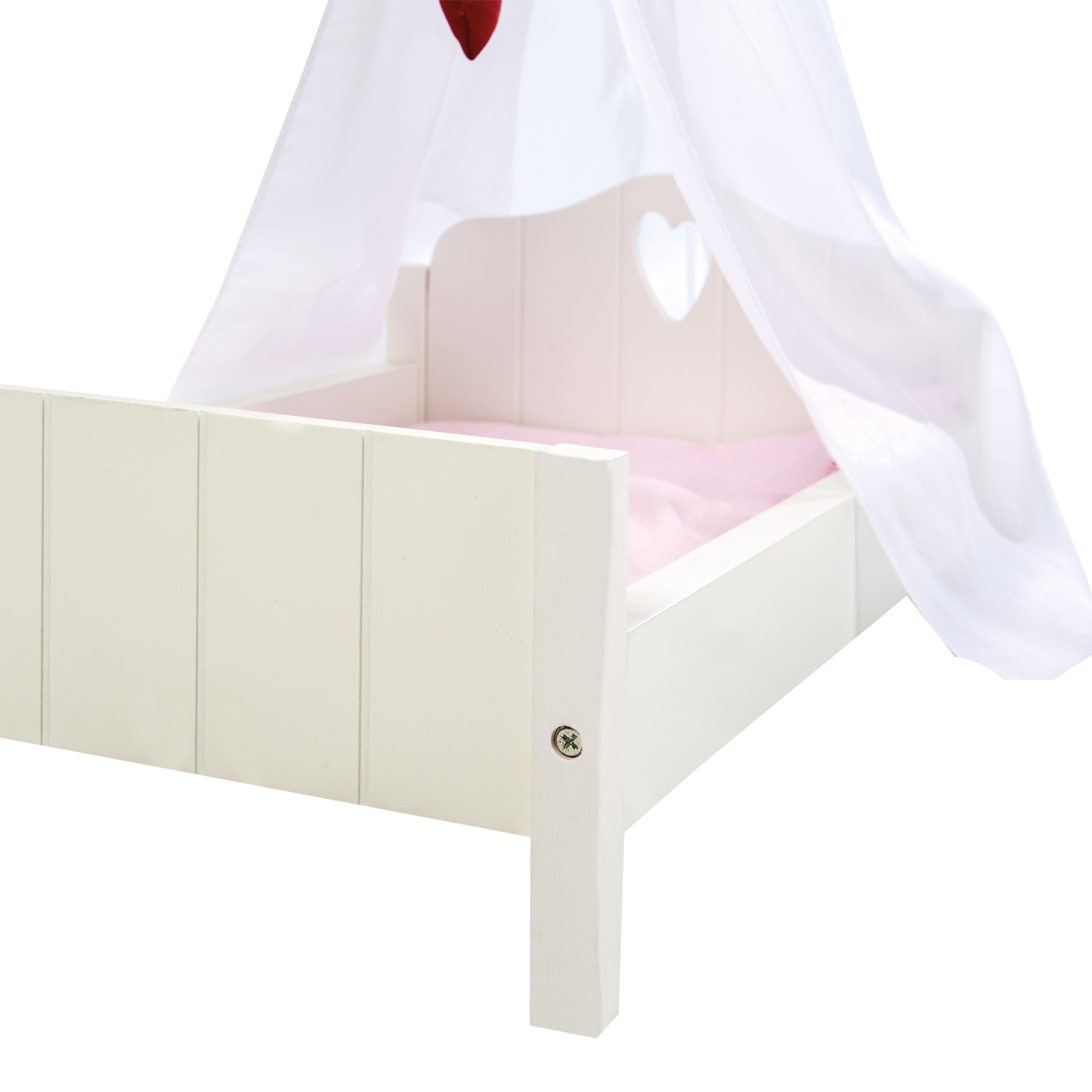 Lit de Poupée Fienchen + Équipement Textile - Bois Laqué Blanc