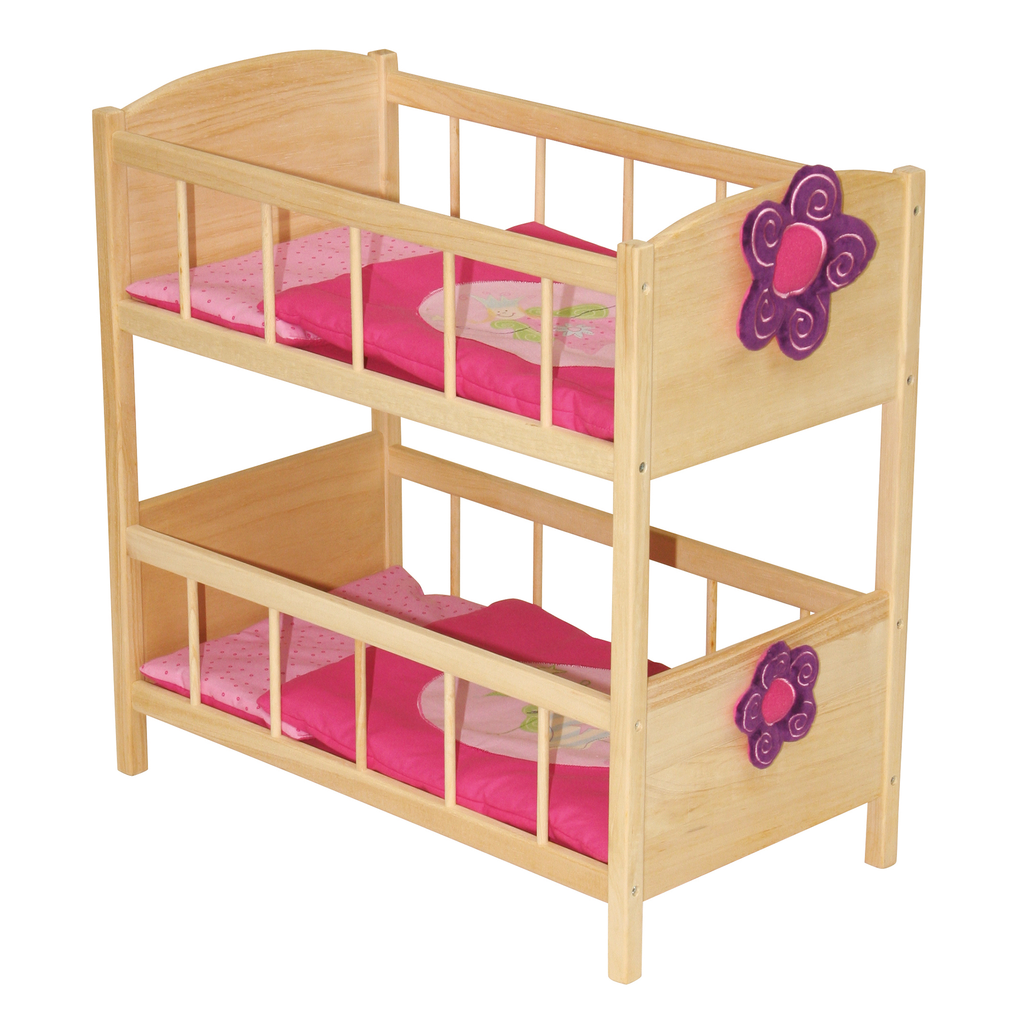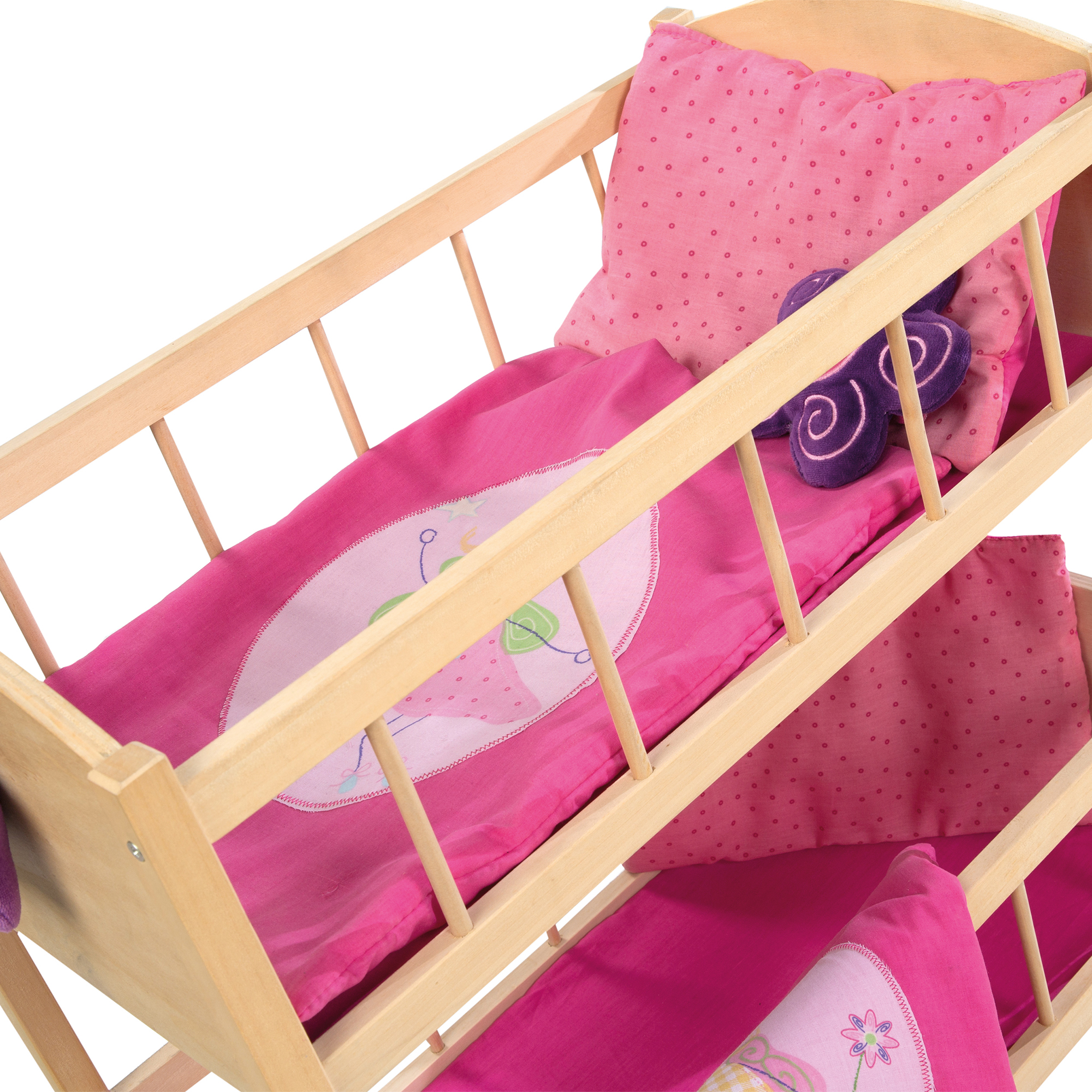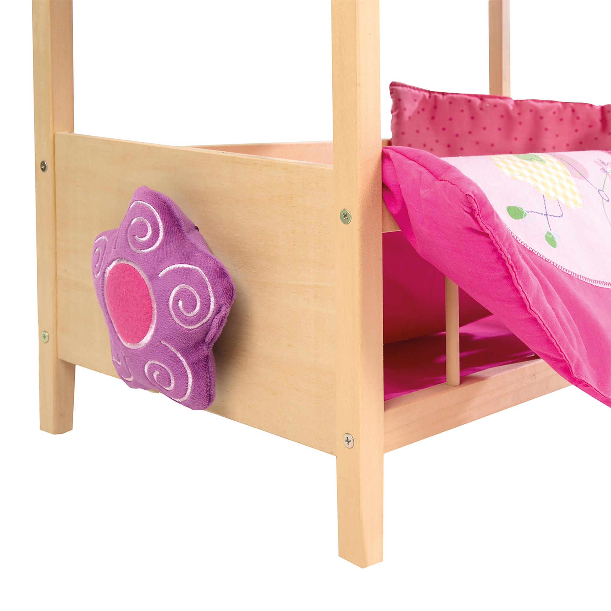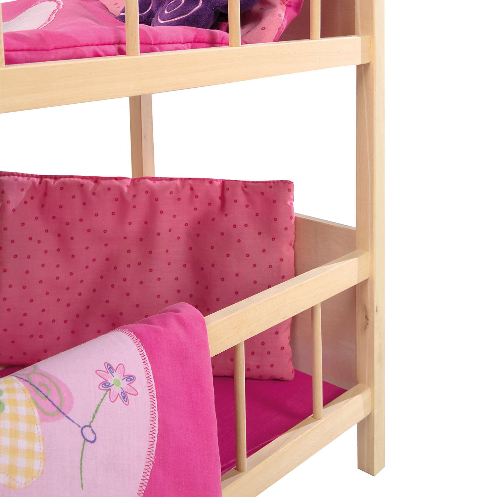 Lit de Poupée Superposé Happy Fee + Équipement Textile - Bois Naturel / Rose