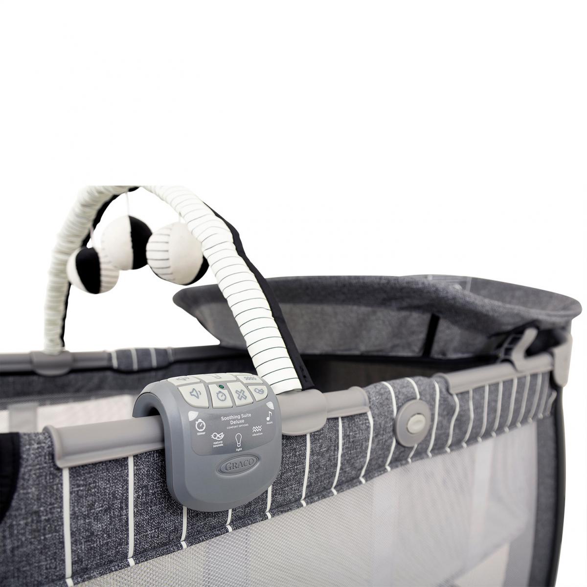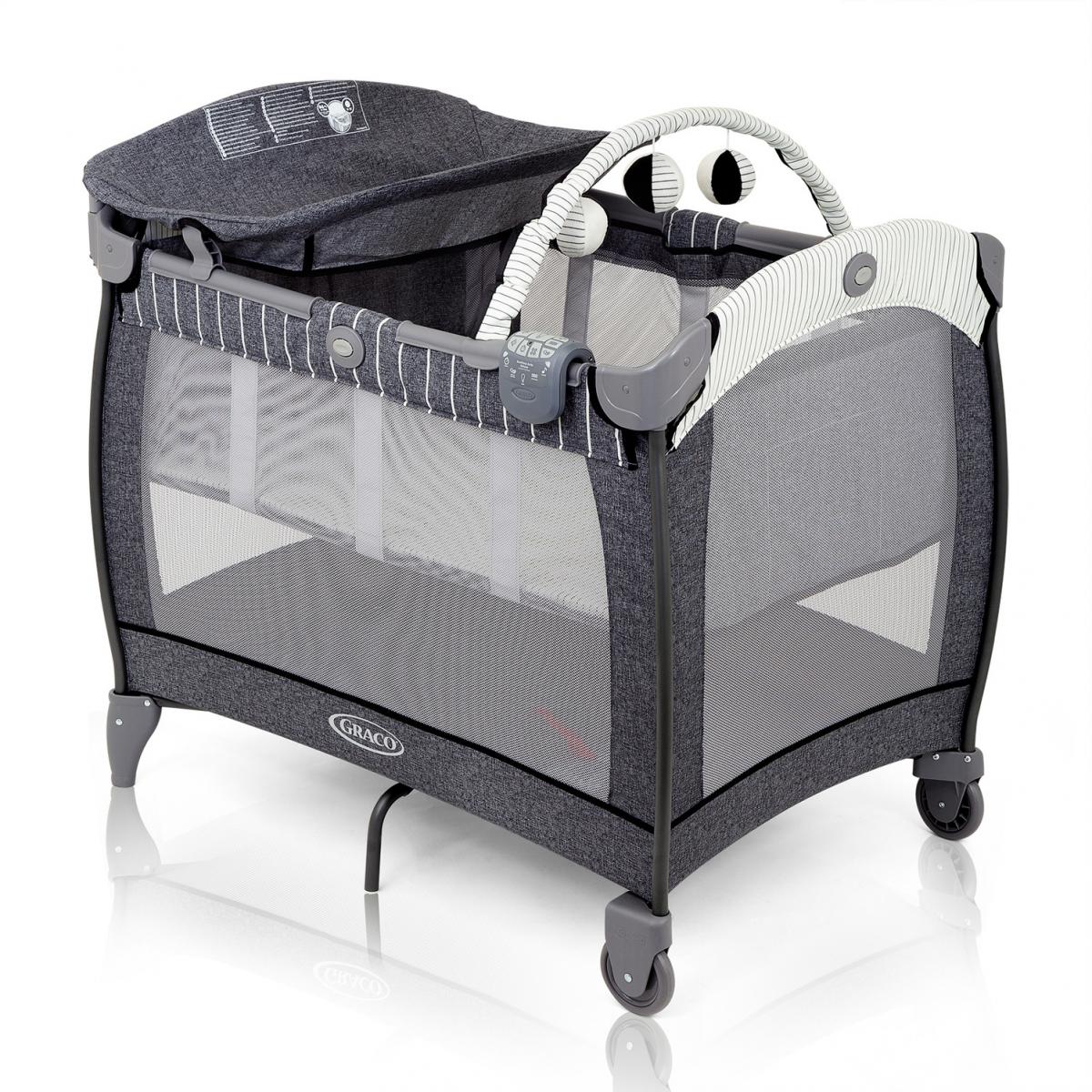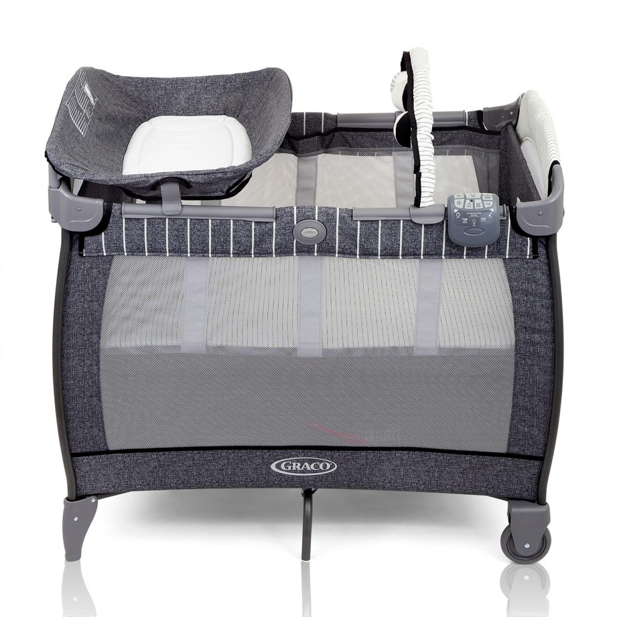 Le lit de voyage Contour Electra évolue avec votre enfant, du nouveau-né au petit enfant. Il offre un berceau amovible pour les nourrissons, une table à langer intégrée avec des tissus lavables, un cintre suspendu avec des jouets, un boîtier de commande amovible pour la veilleuse, la musique et les vibrations pour une expérience de voyage ultime. Grâce à ses deux roues, il peut être transporté sans effort d'une pièce à l'autre. Ce lit de voyage se replie facilement grâce au système de pliage typique de Graco et offre une surface d'appui compacte. Le sac de transport inclus permet de le transporter et de le ranger facilement.