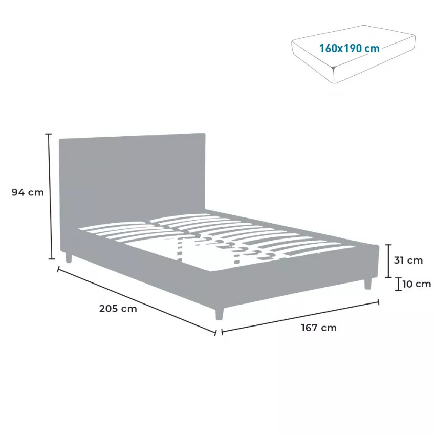 Lit double 160x190 à deux places en tissu avec lattes Description.
