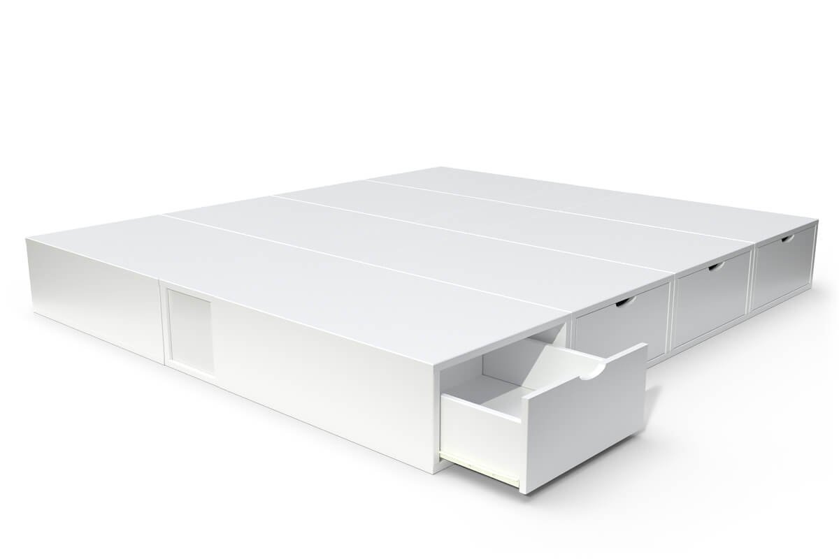 Lit double avec rangement tiroirs Cube, Couleur: Blanc, Dimensions: 160x200