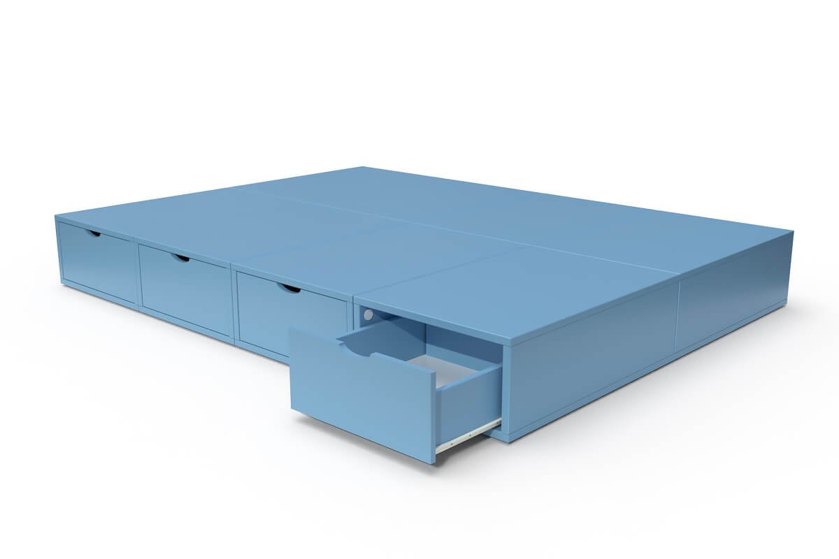 Lit double avec rangement tiroirs Cube, Couleur: Bleu Pastel, Dimensions: 140x200