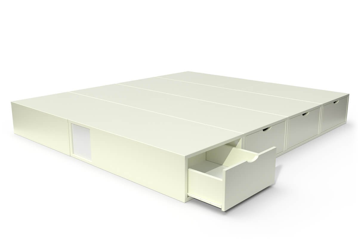 Lit double avec rangement tiroirs Cube, Couleur: Ivoire, Dimensions: 160x200